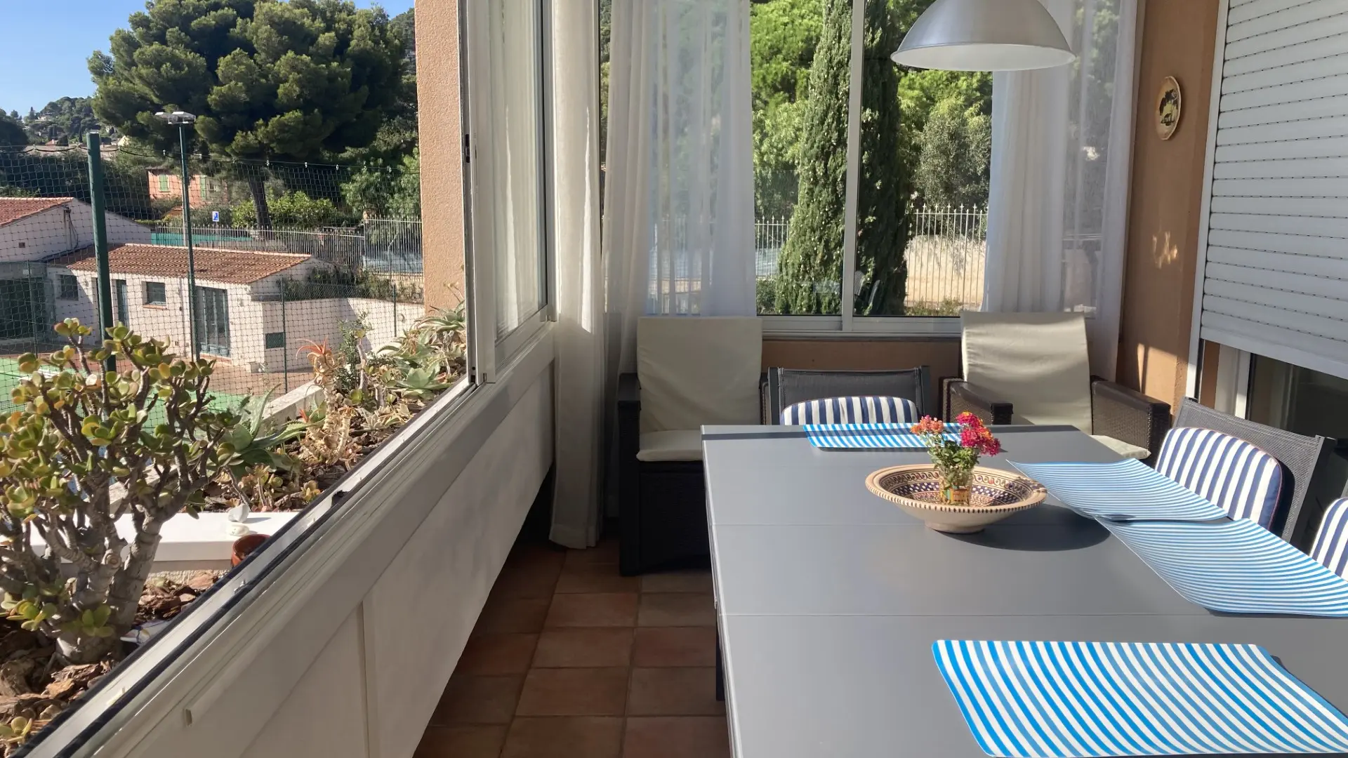 Appartement très bien isolé (2 balcons fermés par baies vitrées). Electro-ménager choisi en fonction de la faible consommation d'électricité et d'eau, uniquement des lampes LED. Tout à pied : le centre avec les commerces, la Mairie,... et le marché le Jeudi, le Port et les Plages à 15 mn à pieds. La commune œuvre pour le développement durable, et a installé des bacs de tris devant le cimetière pour le verre, le papier et plastique, l'aluminium et les vêtements.