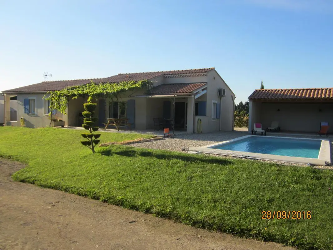 Maison récente individuelle entièrement de plain pied, avec piscine privative, climatisation, jardin.. Proche des commerces et à 10mn de la sortie d'autoroute Avignon Nord. Possibilité de location avec un autre gîte jumeau sur place (capacité totale 12 personnes).