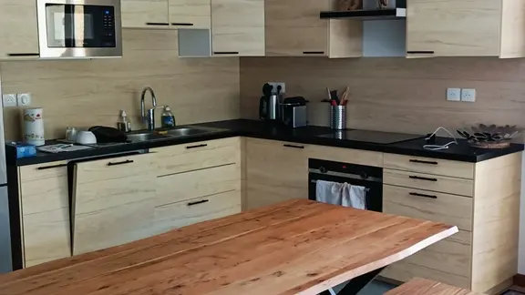 - un séjour agréable comprenant la cuisine, la table à manger pour 8 personnes et le salon avec télévision connectée