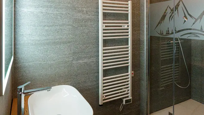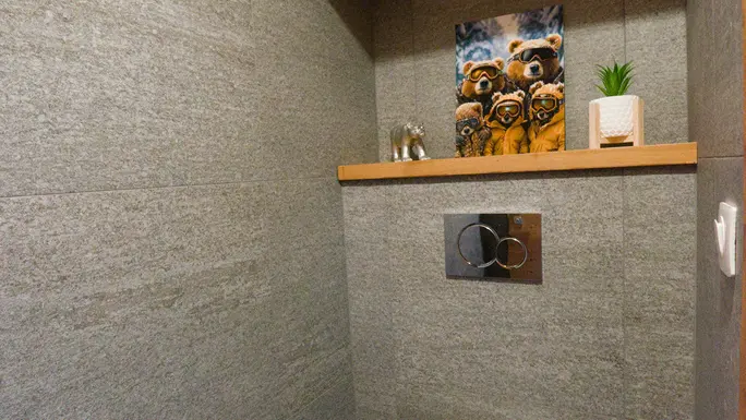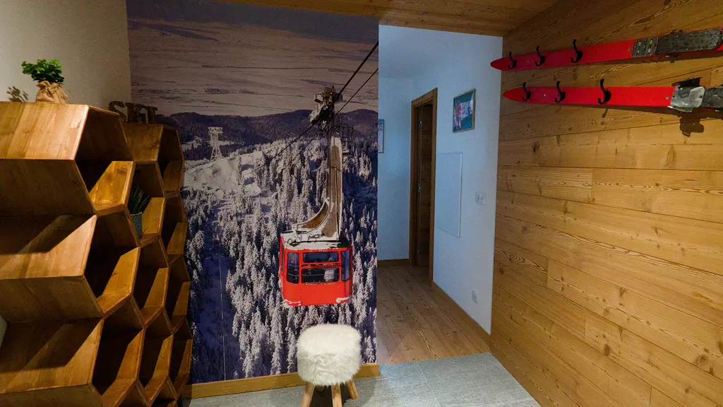 - l'entrée avec étagère de rangement pour casques de ski et affaires personnelles ainsi que des porte-manteaux