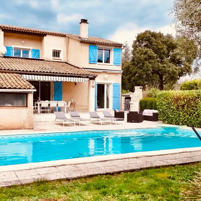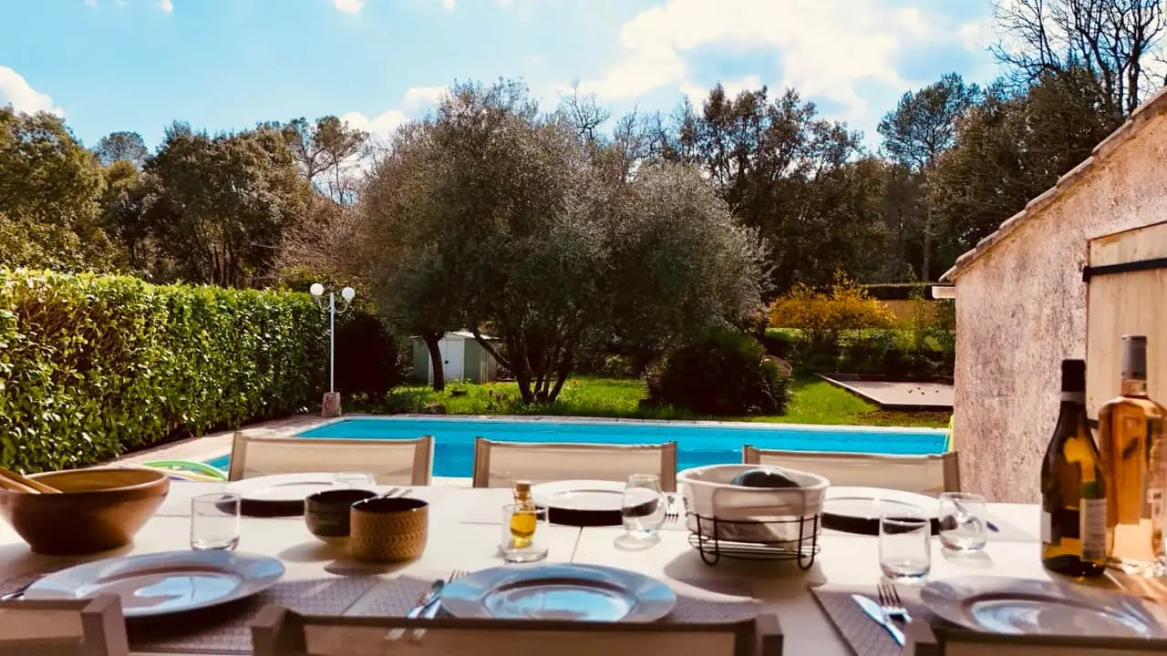 Spacieuse maison de 150 m² indépendante sur deux niveaux avec piscine, terrasse, jardin clôturé et boulodrome. Parfait pour un séjour détente en Provence Verte.