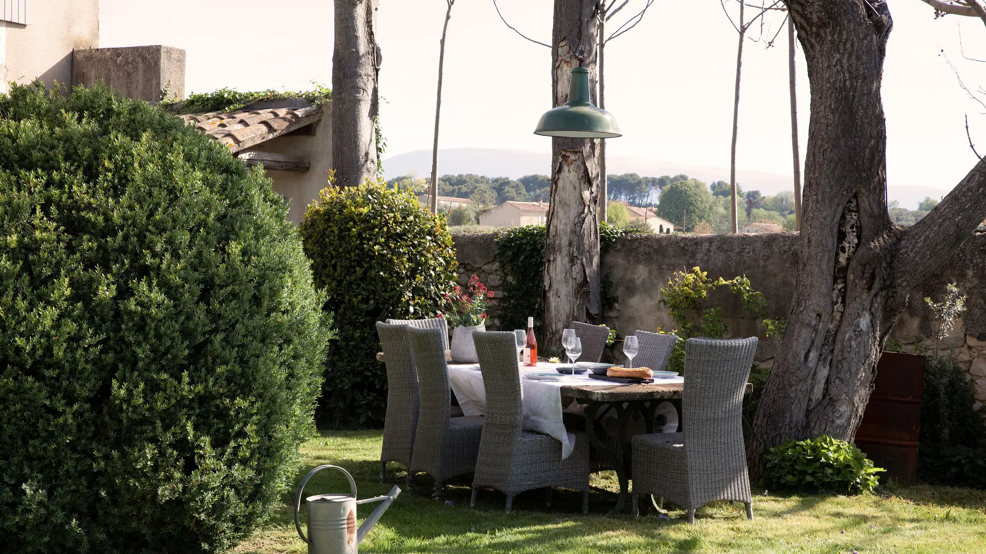 Entourée de vignes, cette demeure typiquement provençale a été décorée dans un esprit brocante et vintage avec nombre de meubles et d’objets chinés. Le jardin offre divers espaces dans lesquels vous pourrez flâner ou vous relaxer.