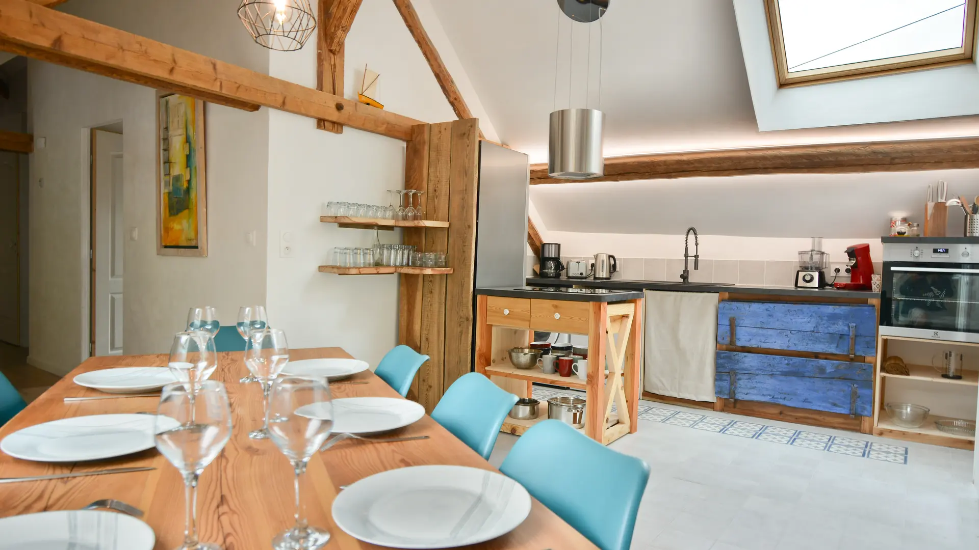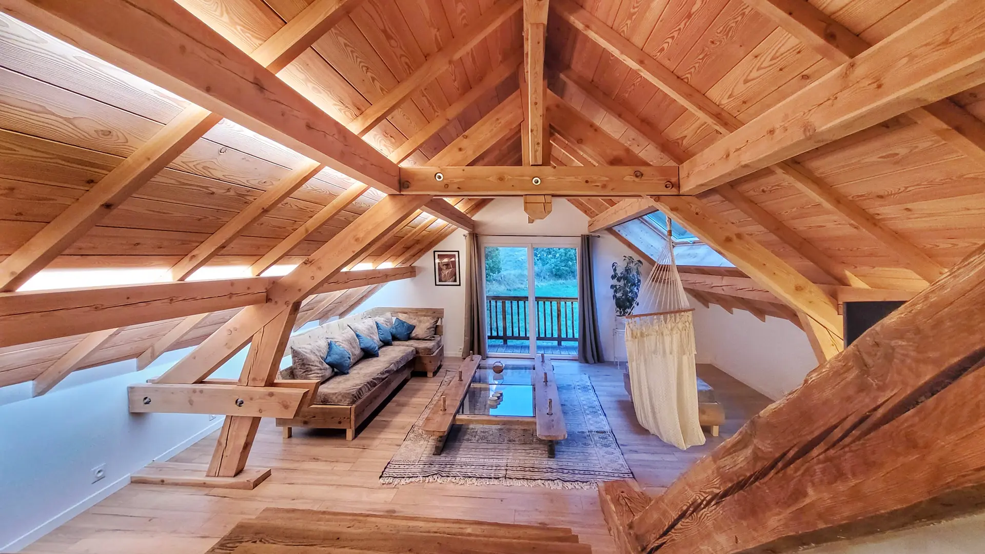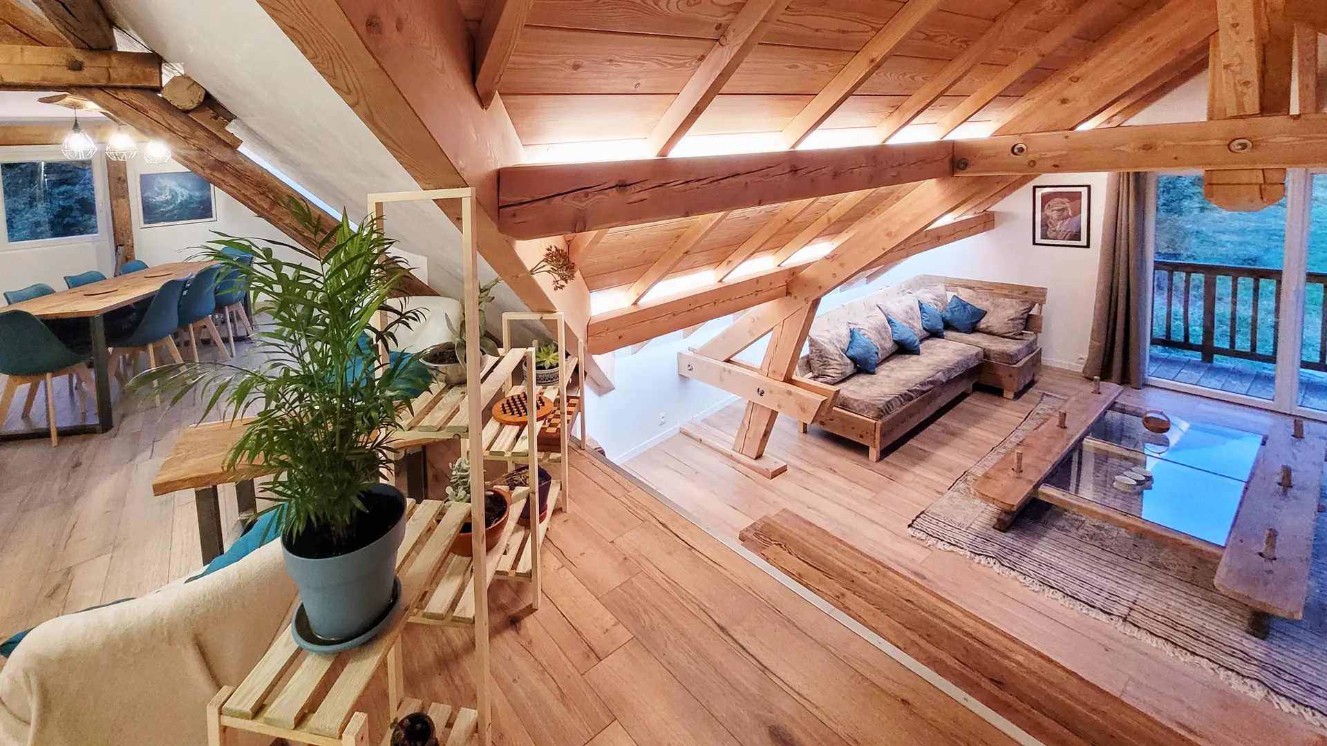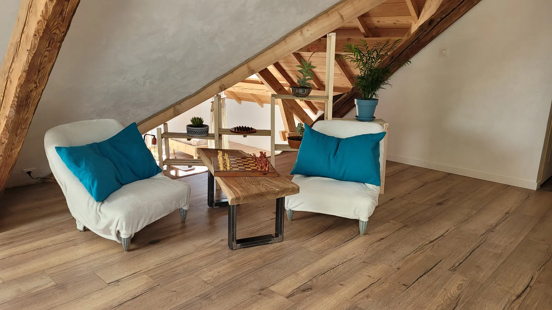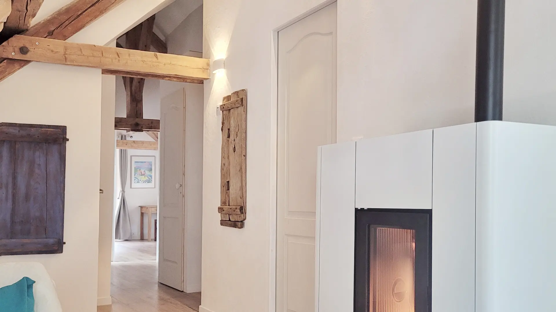 Situé sous les combles d'une ancienne grange entièrement rénovée par nous-mêmes, cet appartement, spacieux et lumineux, et meublé avec goût, offre une expérience unique où confort et sérénité se rencontrent pour créer un séjour inoubliable. Dès votre arrivée, vous serez charmés par l’élégance de la décoration, alliant modernité et touches locales authentiques.
