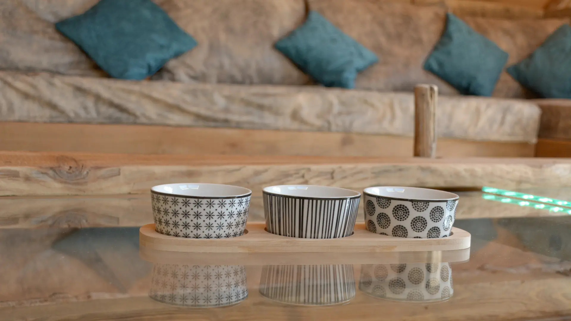 Le grand salon, baigné de lumière naturelle, s'ouvre sur un balcon où vous pourrez profiter d’une vue imprenable sur la montagne environnante. C’est l’endroit idéal pour savourer votre café du matin ou un apéritif en soirée.