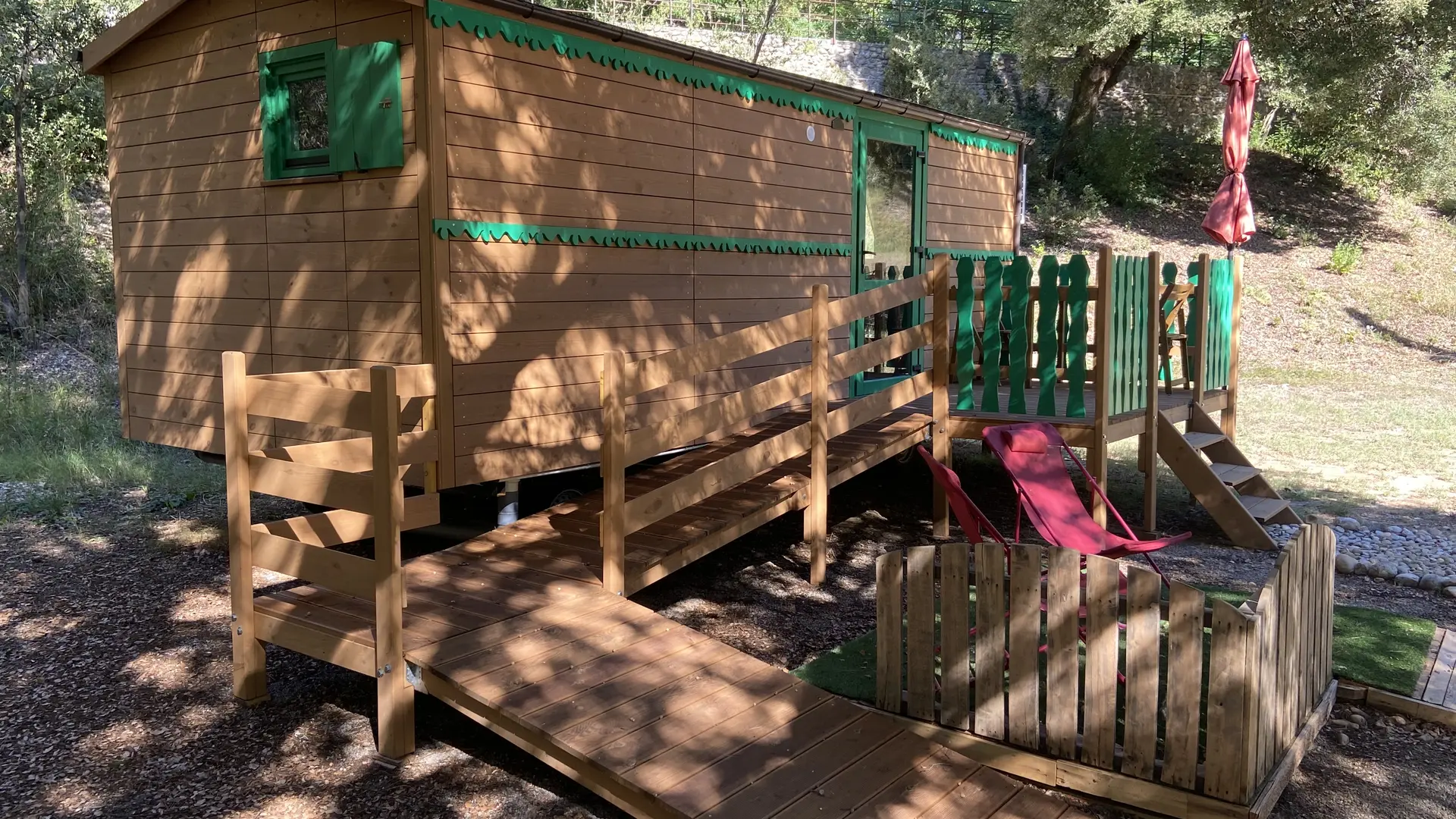 Cet hébergement insolite de 18m2 sans rien céder au charme et au confort, est une invitation à l’évasion pour tous les amoureux de la nature, valides ou non. Loin de l’agitation du monde, l’ambiance y est intime et vous enveloppe d’une douce quiétude, pour vous ressourcer le temps d’un week-end ou plus longuement…