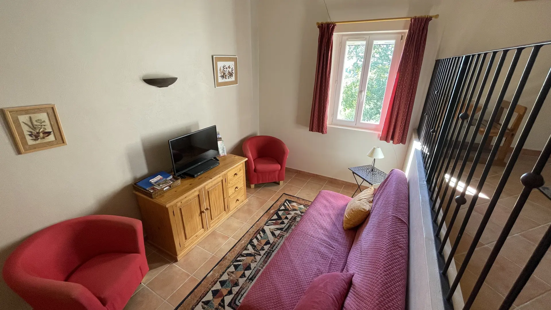 A l’intérieur, les deux chambres du gîte offrent une belle vue dégagée sur la forêt et les collines de la région. Elles disposent chacune d’un grand lit confortable en 160, la chambre familiale offre en plus 2 petits lits superposés. La cuisine est entièrement équipée et donne sur une salle de séjour lumineuse. Un coin lecture/télévision permet de se détendre avec à disposition, des DVD, des livres et des jeux. Le gîte est climatisé en été et chauffé en hiver pour un plus grand confort. Les parents de jeunes enfants peuvent au moment de la réservation demander un lit bébé, une chaise haute, une table à langer, une petite baignoire, un transat….