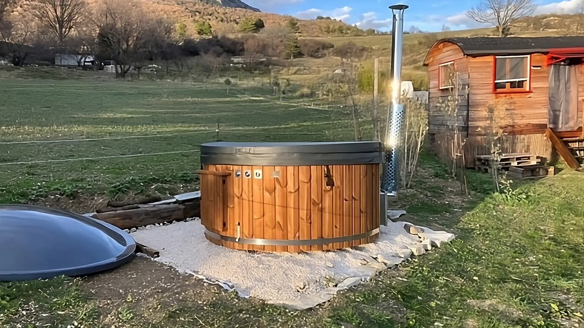 Un bain nordique alimenté à l’eau de source avec fonction jacuzzi, est à votre disposition avec supplément (50€) et réservation.