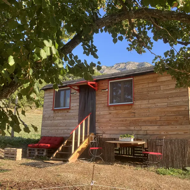 Vous avez envie d'un lieu insolite pour vos vacances ? La roulotte en mélèze vous attend en pays sisteronais au milieu d'une nature préservée et près du parc de 2 ânes de petite taille. Proche de l'UNESCO Géoparc de Haute-Provence et son circuit du temps.