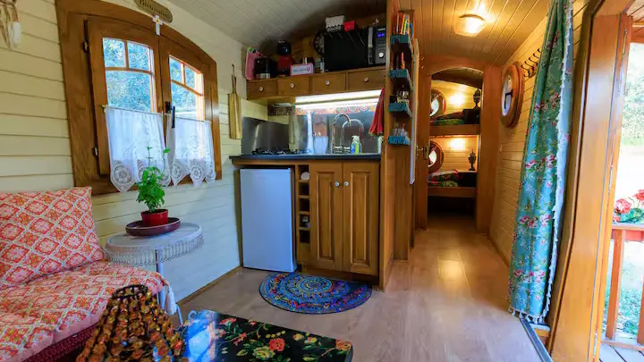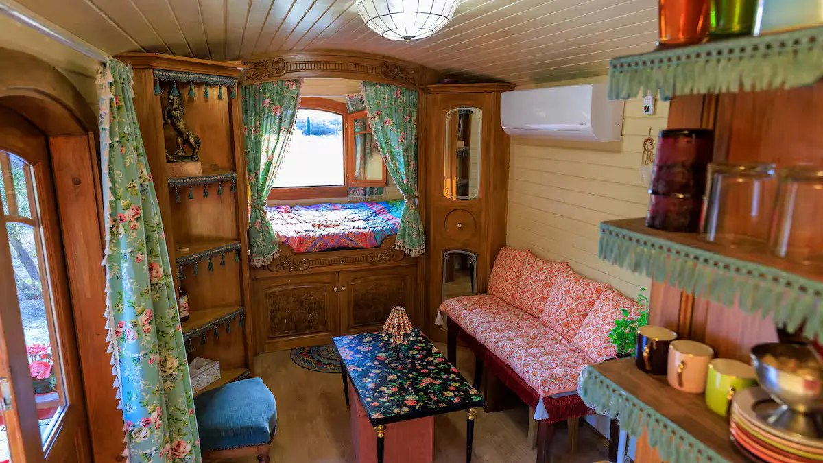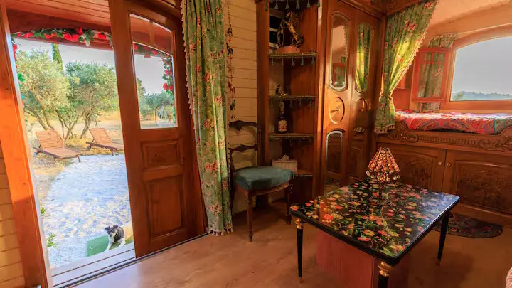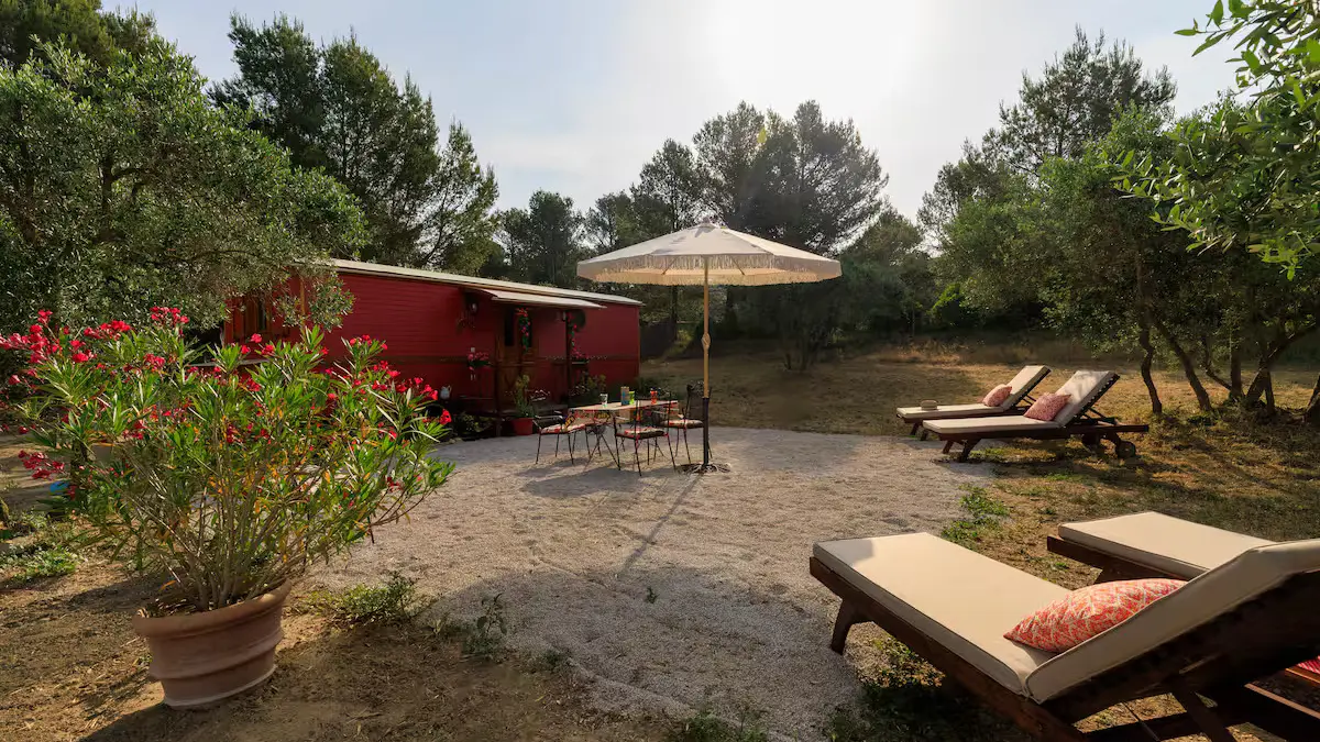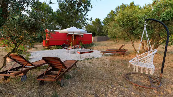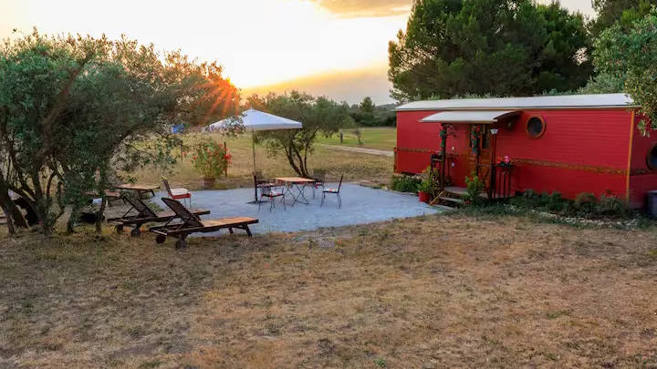 La roulotte Lolitha est une charmante roulotte atypique alliant confort moderne et expérience moderne au coeur de la nature provençale !