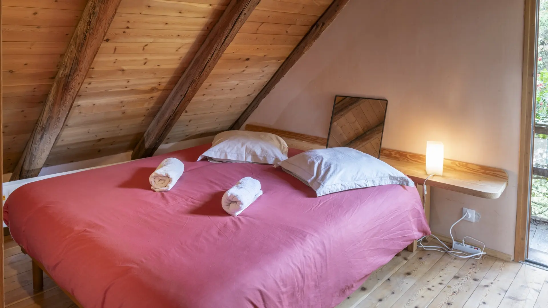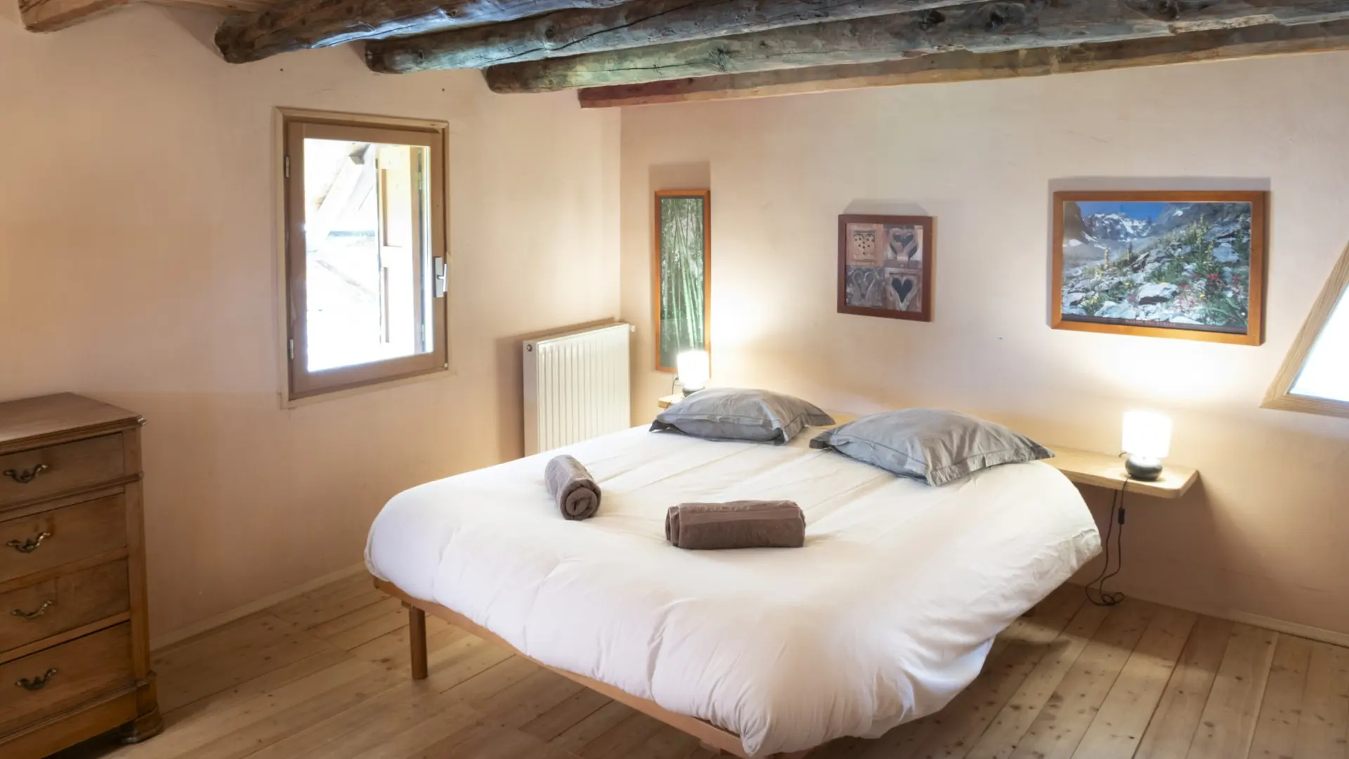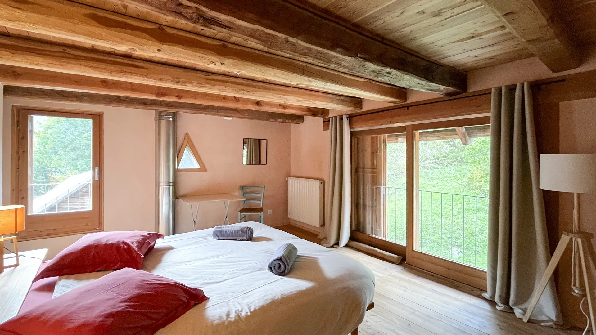 Au dernier niveau, une grande pièce de vie offre une belle hauteur sous plafond, avec de magnifiques poutres. Un coin dortoir est accessible en mezzanine (échelle de meunier), ainsi que deux chambres doubles accessibles depuis la pièce de vie, et donnant sur un autre balcon.
