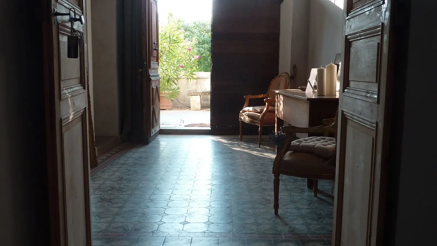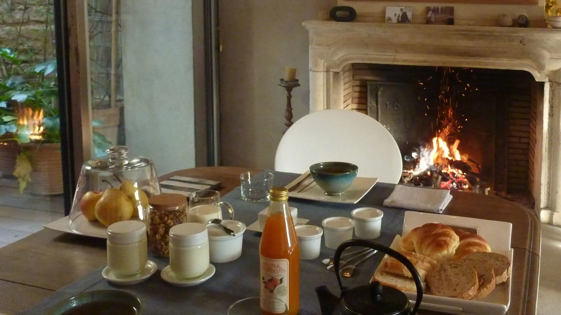 Petits-déjeuners servis au frais dans la cour intérieure ou devant la cheminée en hiver. Accès à la terrasse solarium avec douche extérieure.