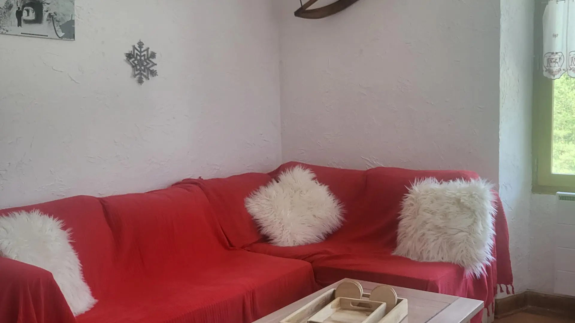Le séjour est lumineux et à une vue sur les montagnes. La literie est confortable, la cuisine est bien équipée.
