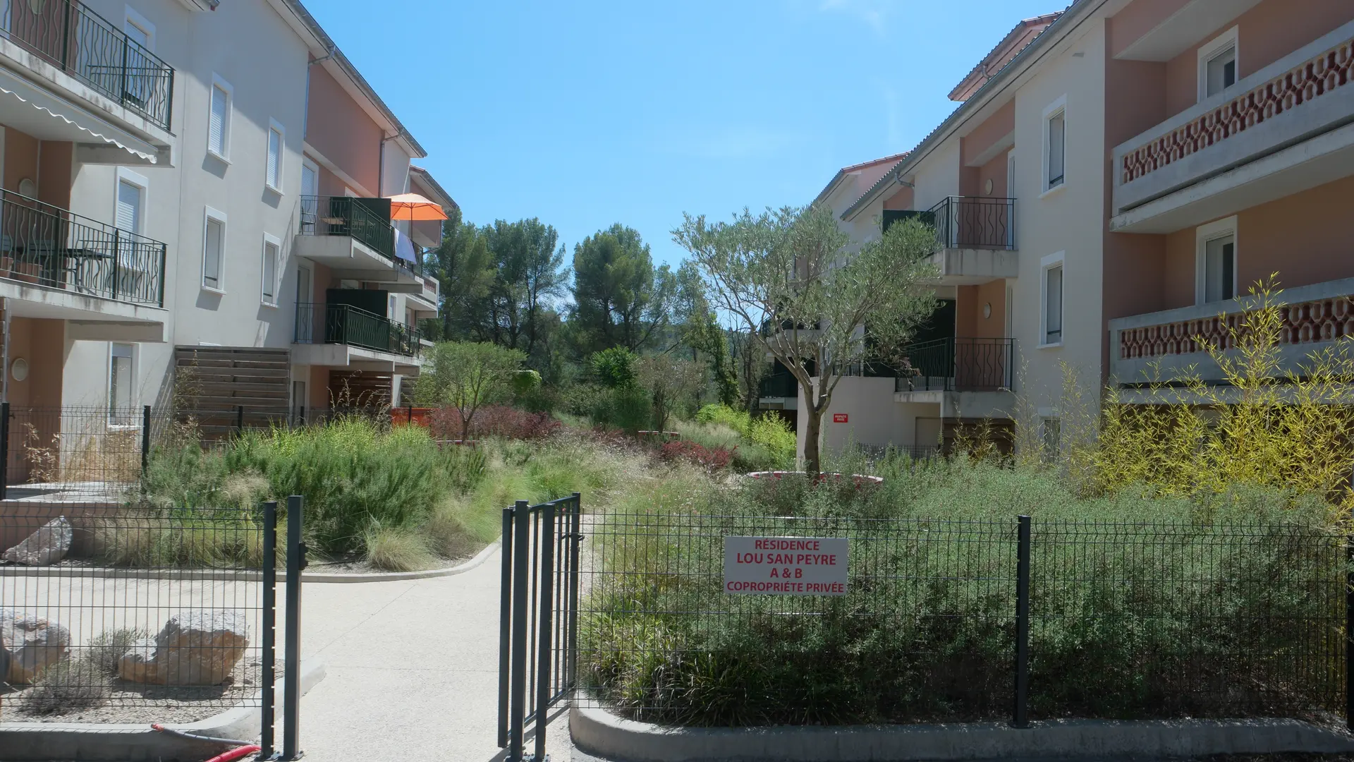 La résidence Lou San Peyre est équipée d’une piscine privée pour ses habitants, d’un garage souterrain avec des parkings réservés et d’un accès direct à l’ascenseur. Pour les vététistes il y a un local commun fermé à clé pour ranger leurs vélos. Les deux bâtiments de la résidence sont séparés par un magnifique jardin provençal accessible uniquement aux habitants.