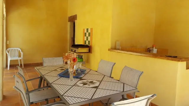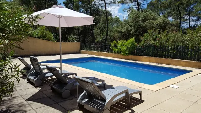 Maison indépendante de plain-pied à la campagne. Piscine privative et sécurisée par clôture et portillon d'accès. Terrain vaste et non clôturé. Pas de route passante à proximité, calme assuré. Animaux acceptés avec autorisation préalable.