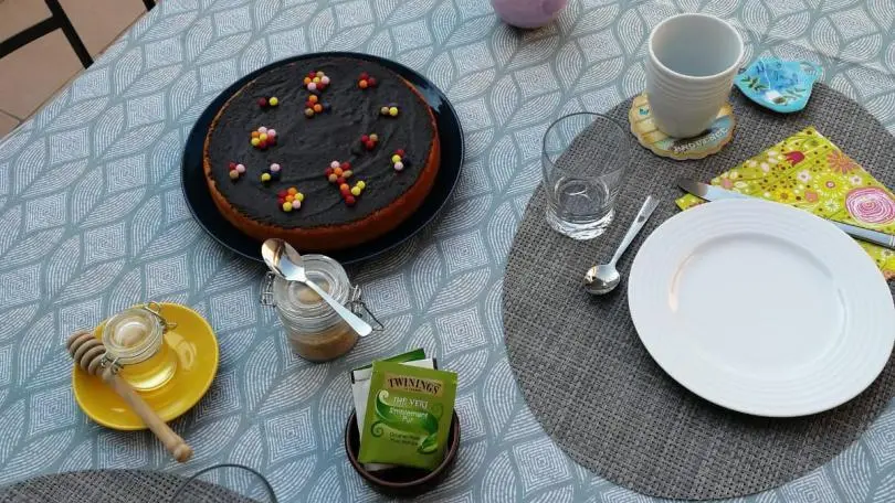 Petits déjeuners complets (viennoiseries, pain, laitages, œufs, charcuterie, fromages, fruits frais et jus pressé) servis selon la météo dans la maison, sur la terrasse au bord de la piscine ou sur la terrasse du chalet.