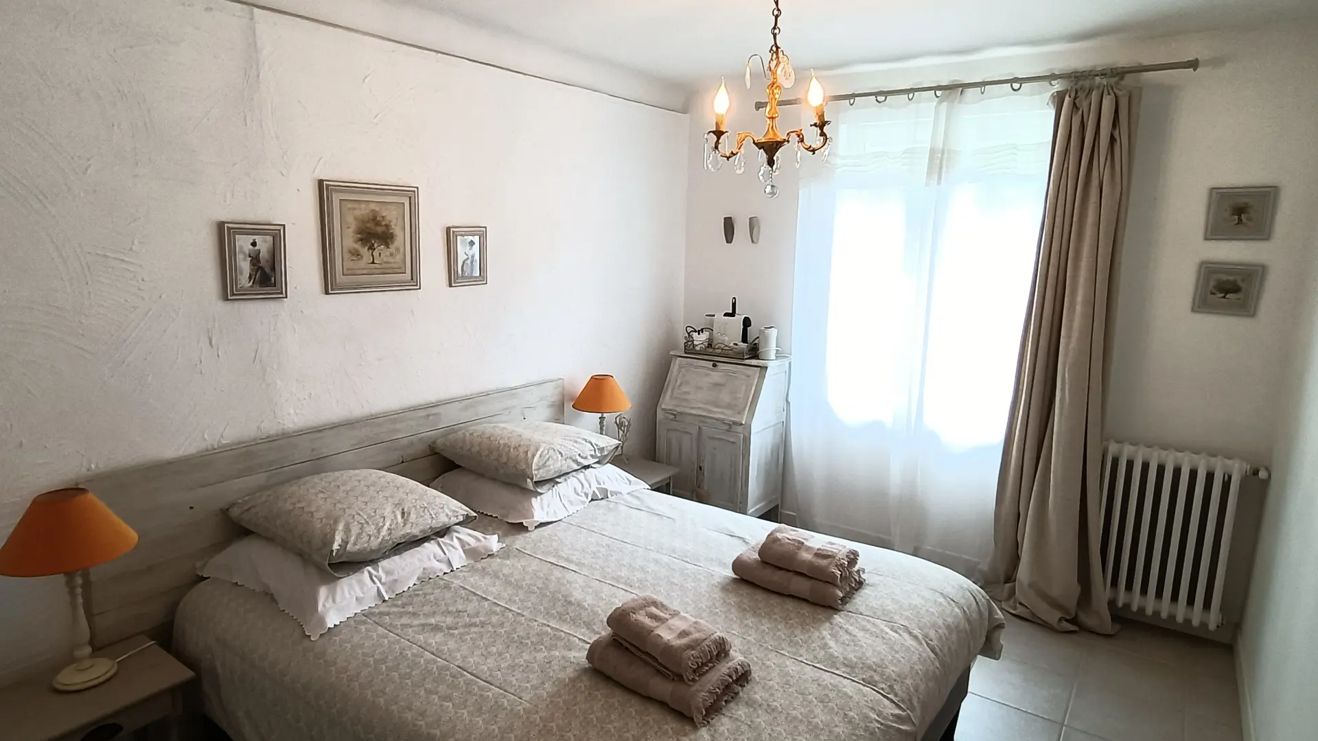 La chambre climatisée est équipée d’un lit de 160 cm, de la wifi gratuit, d’une télévision, d’un réfrigérateur, d’une salle d'eau et de toilettes privatives.