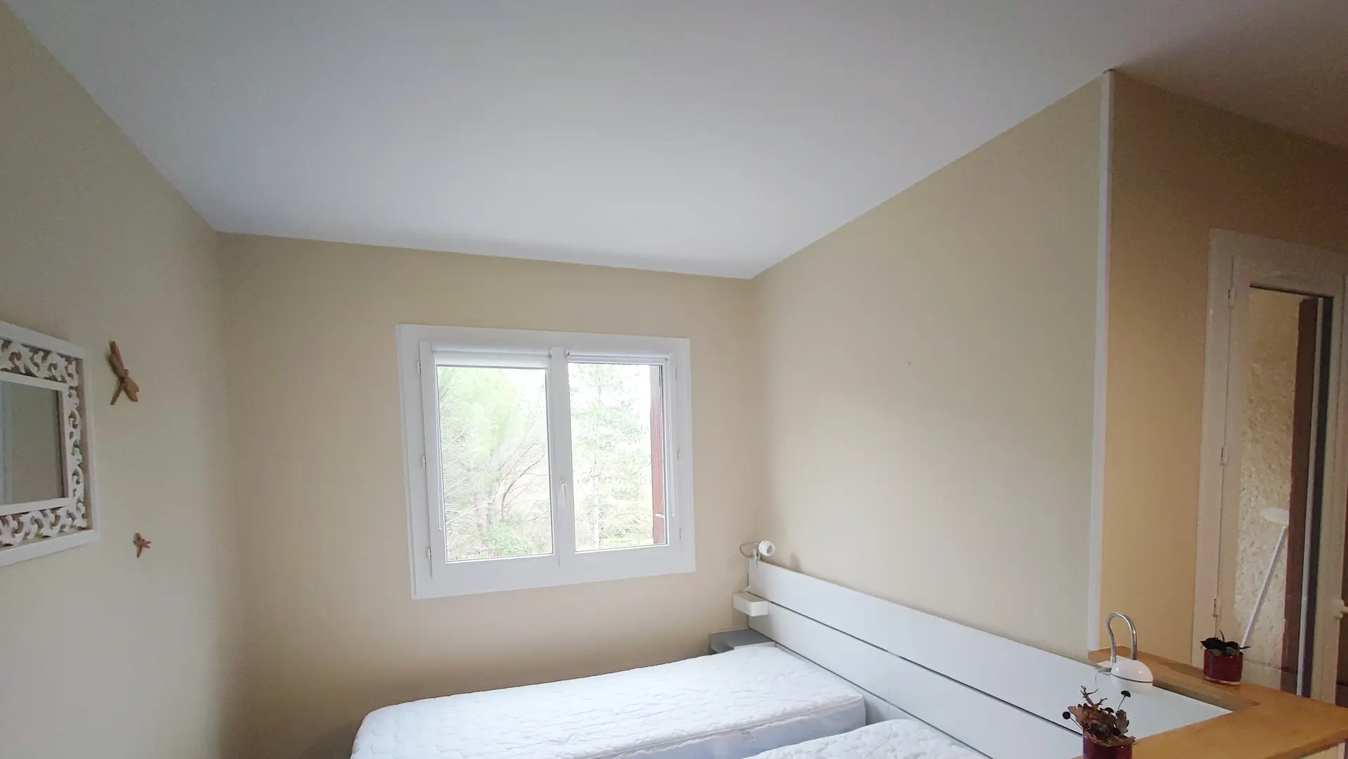 Le studio est équipé d'un coin nuit avec 2 lits simples de 80x200cm, les draps ne sont pas fournis. En accolant les lits, vous obtiendrez un lit double en 160x200cm. La literie est de 2023, bien confortable d'après les retours des curistes ! Nous fournissons les alèses, les coussins à mémoire de forme, un polochon et un coussin carré classique, ainsi que 2 couettes légères en 150x200cm.