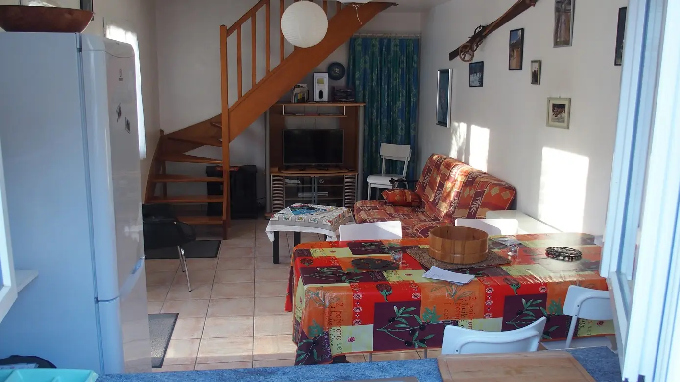 Location de 65 m² comprenant 3 chambres, une salle de bain, 1 WC indépendant, cuisine équipée, salon-séjour, donnant sur une terrasse avec barbecue et salon de jardin, le tout sur un terrain paysagé de 2000m².
