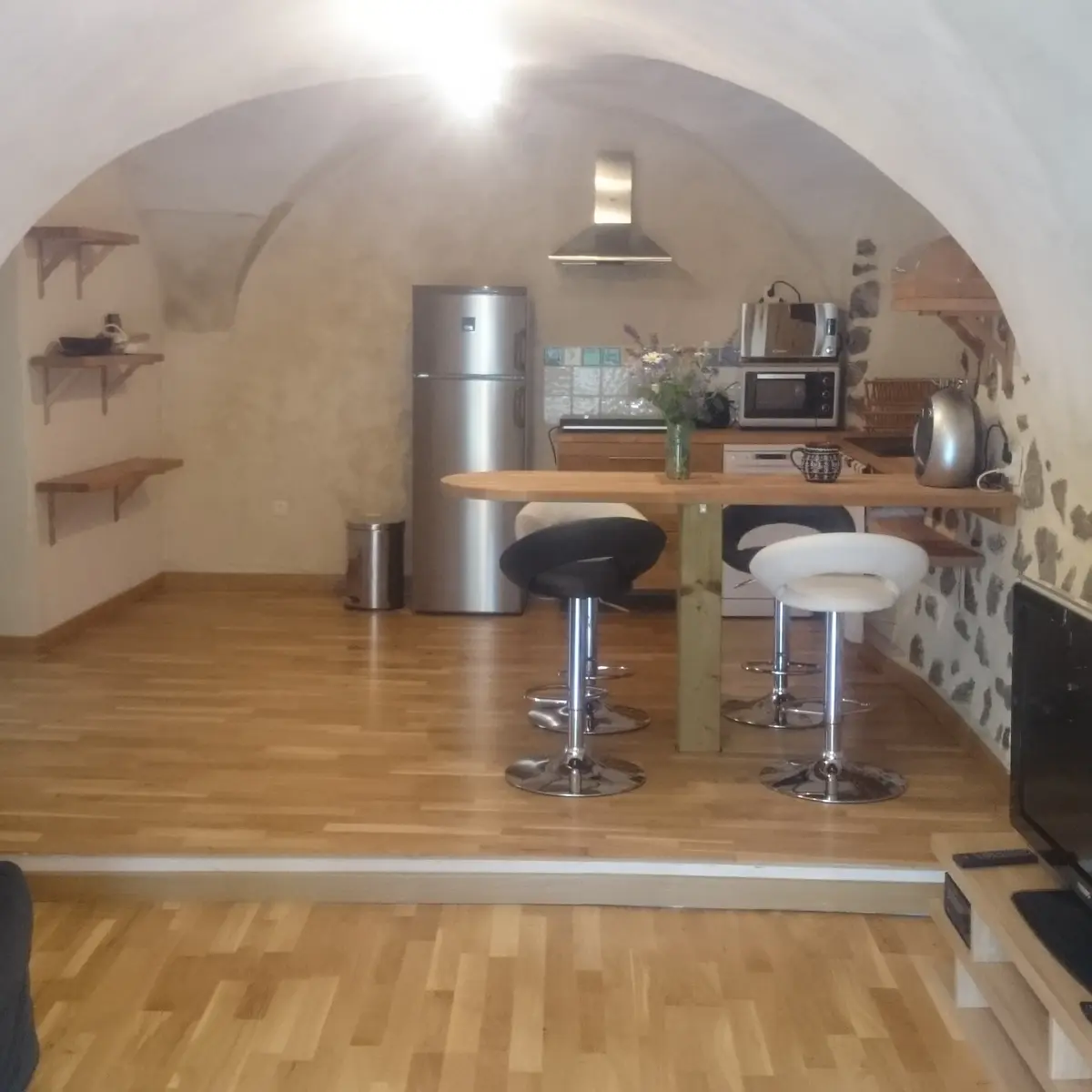 Ce logement entièrement restauré à neuf a été aménagé dans une ancienne bergerie voûtée. D'une superficie de 56 m², il possède une chambre (13m²) avec un lit double et un lit simple, un grand coin cuisine et repas tout équipé ainsi qu'un séjour avec canapé convertible.