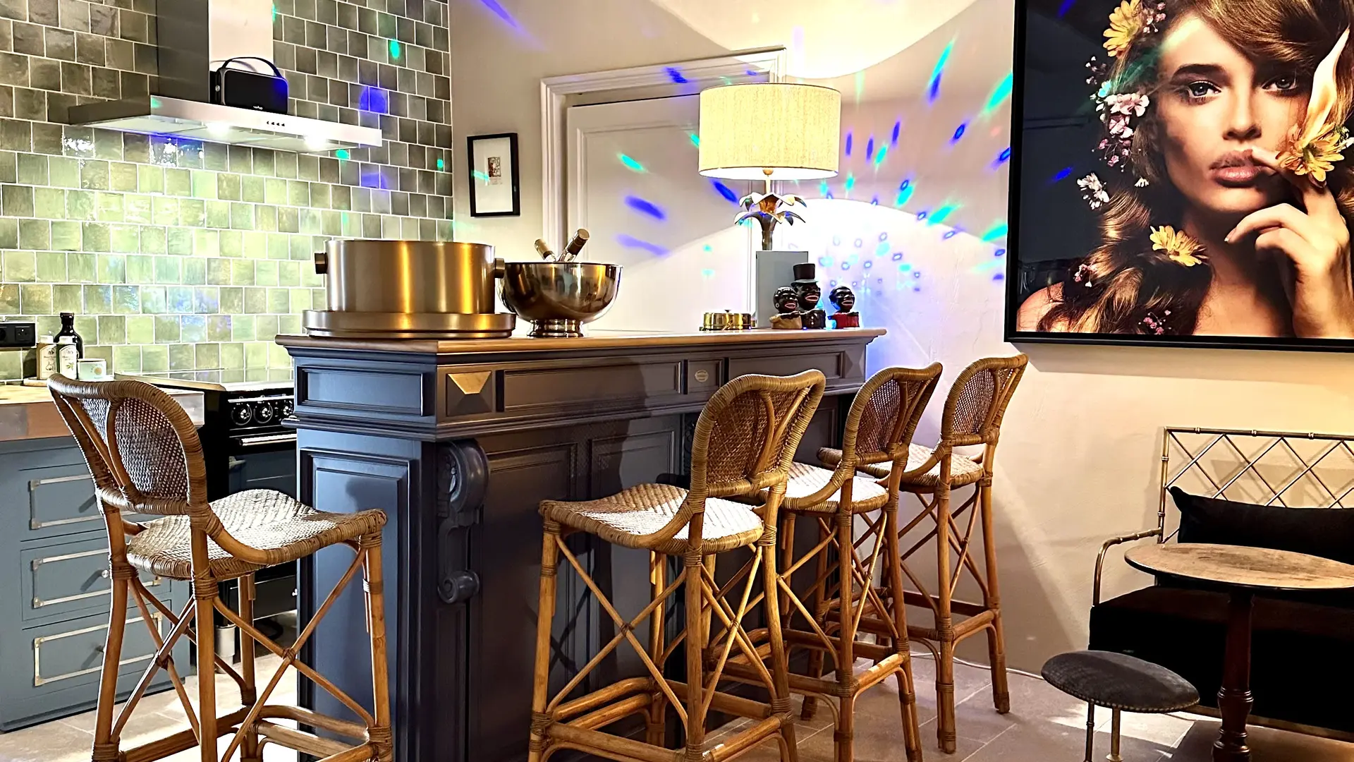 Cette demeure est un enchantement, une parenthèse inattendue où la décoration intérieure et l’ameublement sont uniques et somptueux.