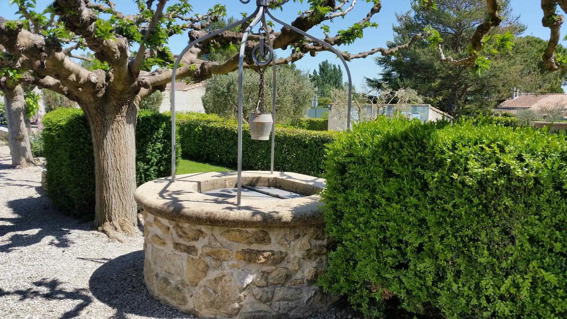 Gîte dans les dépendances d'une maison comprenant deux autres gîtes, 13G910840 et 13G910838 (Gîte Sylvie et Gîte Christelle), à proximité de la villa des propriétaires dans le village de Mouriès. Propriété entièrement close (portail automatique : télécommande à disposition). Rez de Chaussée : séjour/cuisine (4 feux électriques, frigo/congélateur, four, micro ondes) avec espace repas et canapé . Salle de bain. Wc. En étage, mezzanine avec 1 lit 2 pers et 2 lits superposés (séparés par un rideau). 1 Chambre indépendante avec 1 lit 2 personnes. Lit bébé sur demande. Chauffage central (60€/semaine). Wi-Fi. Climatisation. Draps : 10€/paire/séjour. Terrasse privée de 12 m² semi fermée, salon de jardin. Équipements communs : Piscine sécurisée (6x14) du 1/05 au 30/09, jardin gazonné de 2000 m², cour, parking fermé. Animaux admis sous conditions : se renseigner auprès du propriétaire.