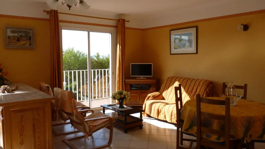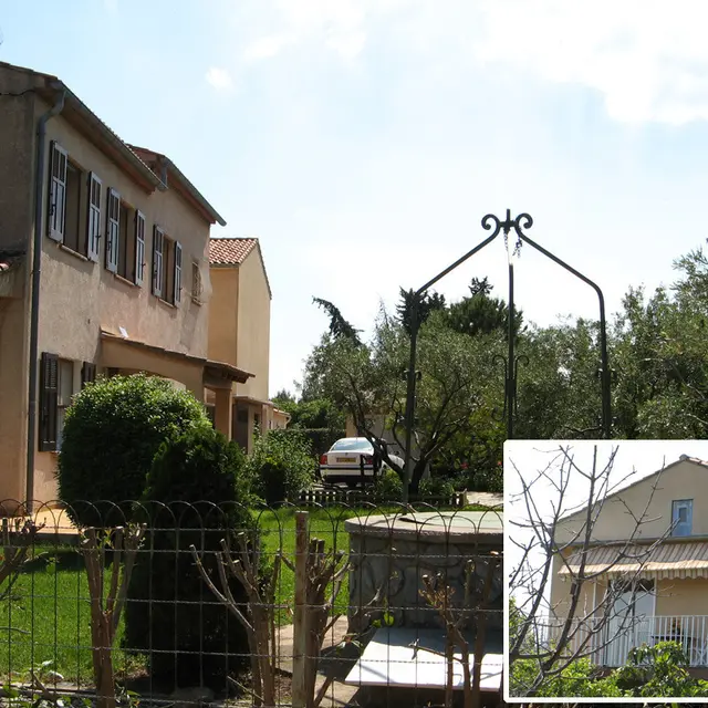 Terrain commun clos. Balcon, terrasse privative avec salon de jardin, barbecue, jardin d'agrément, jeu de boules. Toulon 25km, Hyères 25km. 1er étage : cuisine américaine entièrement équipée-séjour, salle d'eau, w.c., 1 chambre 1 lit 2 places, 1 chambre 2 lits 1 place. Chauffage électrique. En rez-de-chaussée 1 garage non utilisable.