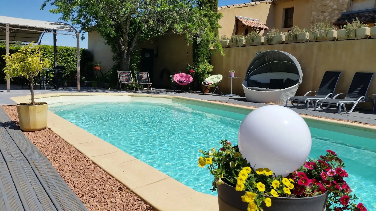 Maison d'hôtes familiale et conviviale au cœur du Luberon et au pied d'Oppède le Vieux avec vue sur le Mont Ventoux et les vignes, avec piscine chauffée.