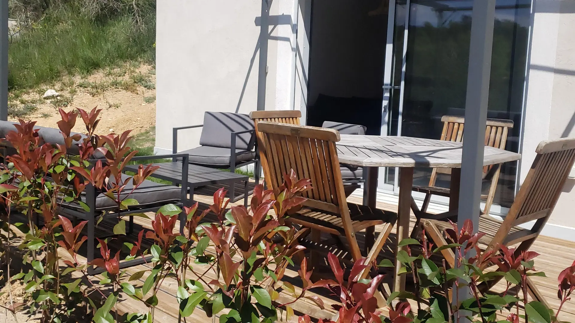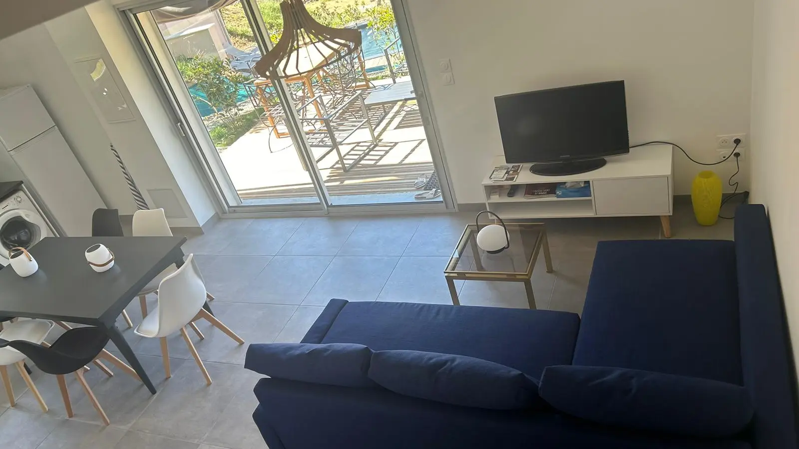 Extérieur : 1 terrasse au rez de chaussée et un espace de jardin privatif avec plancha, transat, salon de jardin. Piscine chauffée de mai à octobre (date d'ouverture en fonction de la météo) et places de parking gratuites.