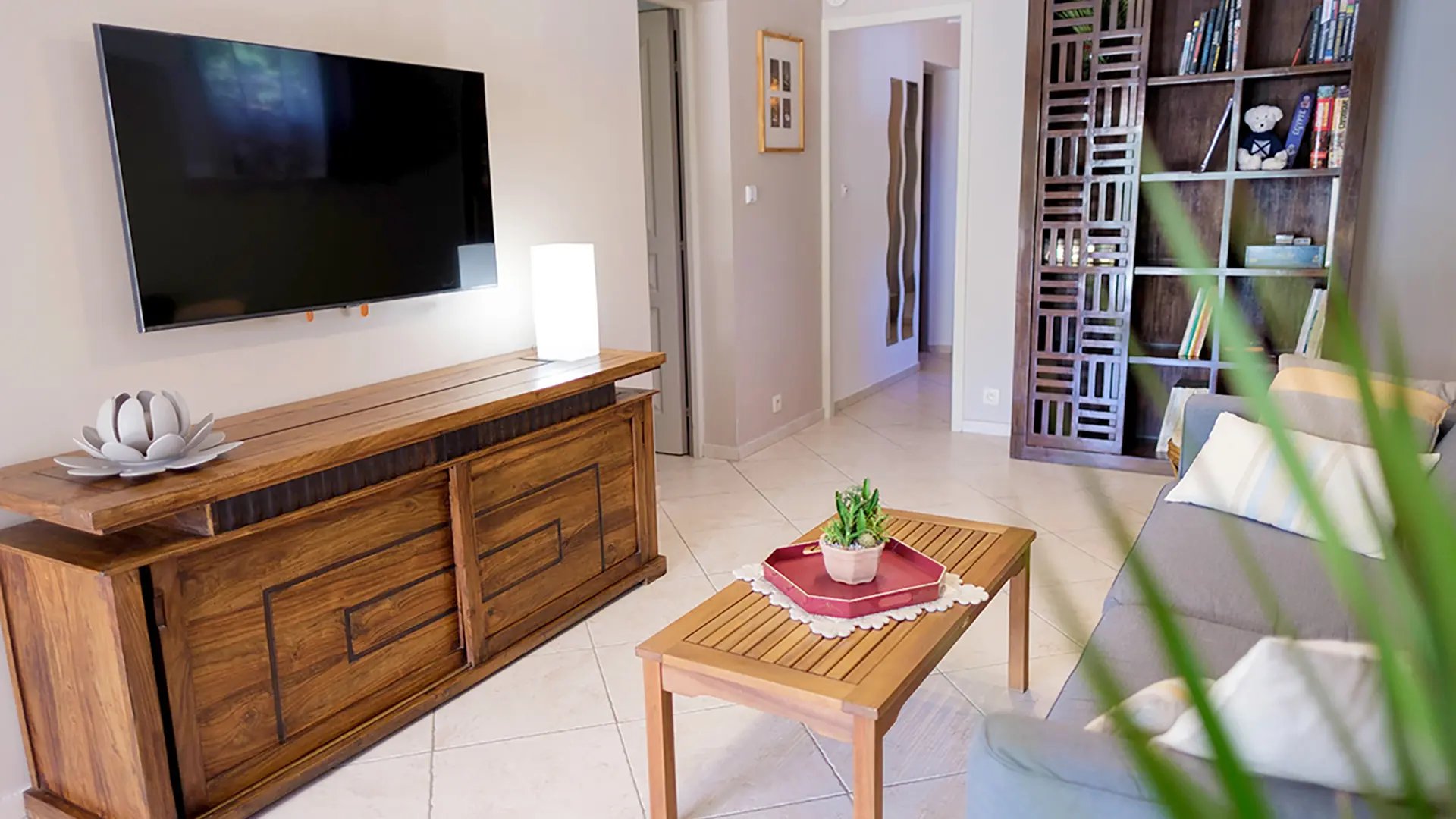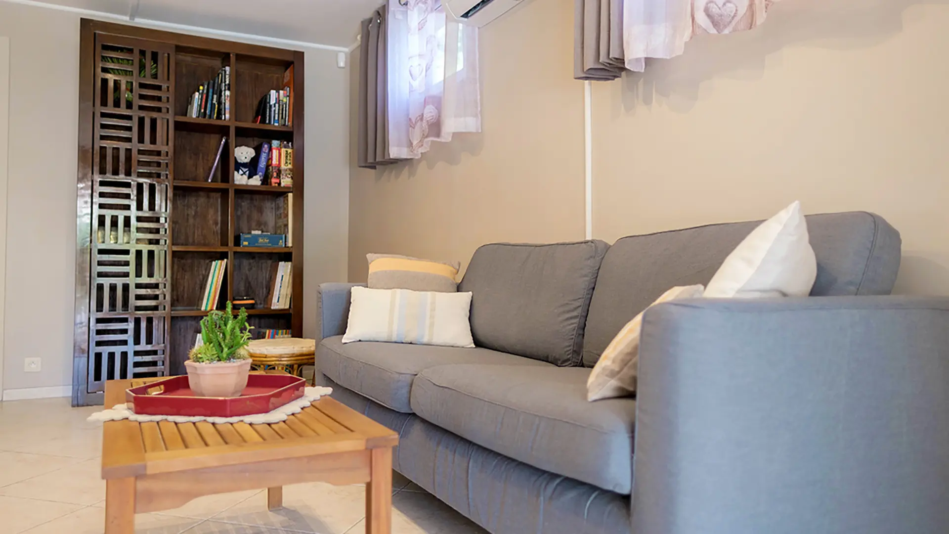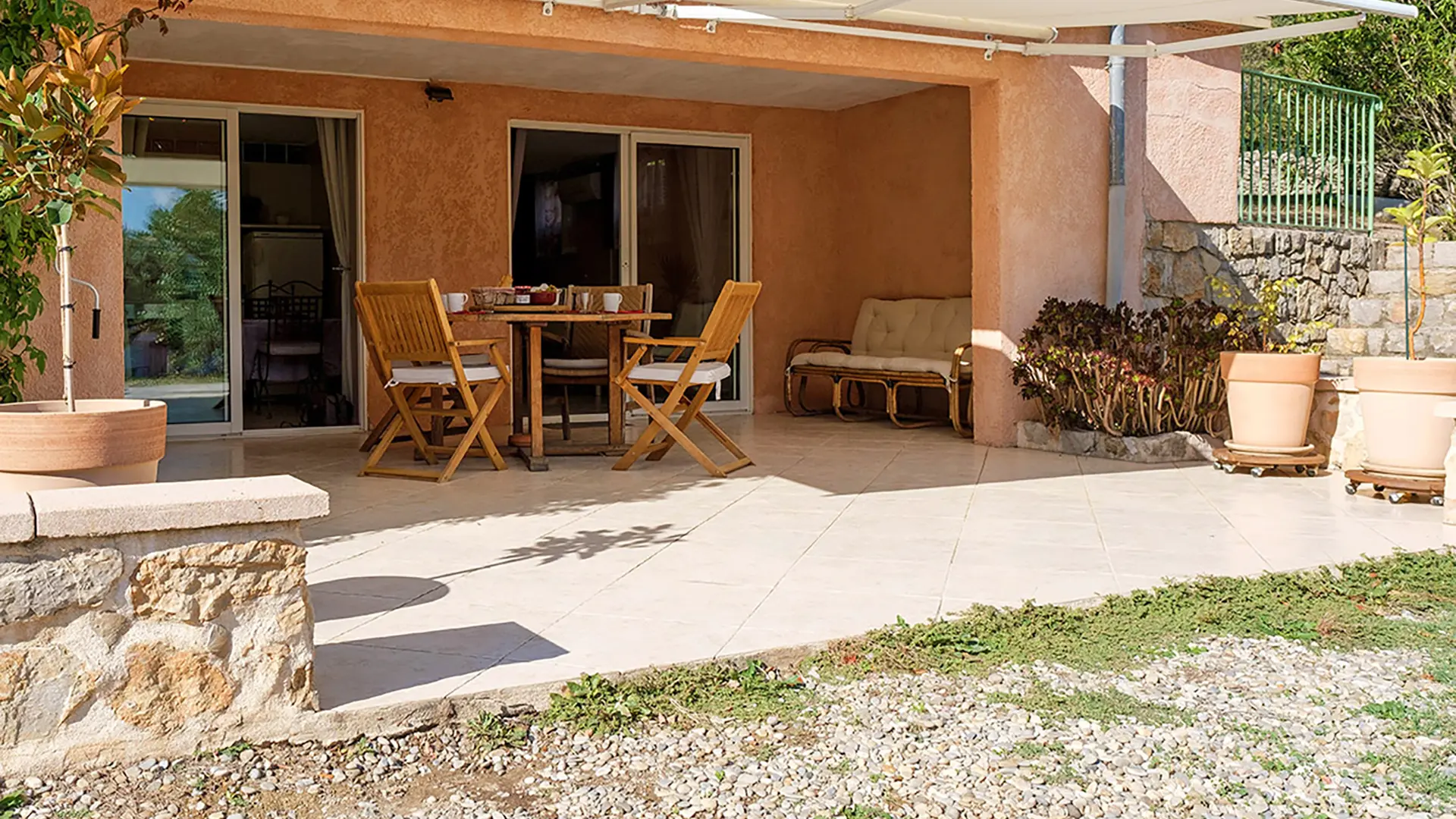 Votre espace vie de 5O m2 ainsi qu’une grande terrasse couverte appréciable en toutes saisons.
