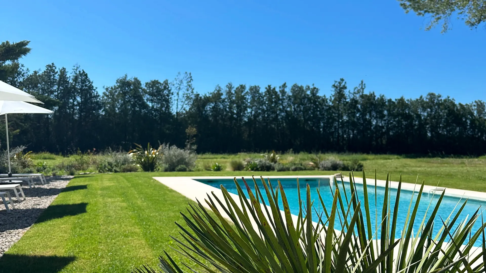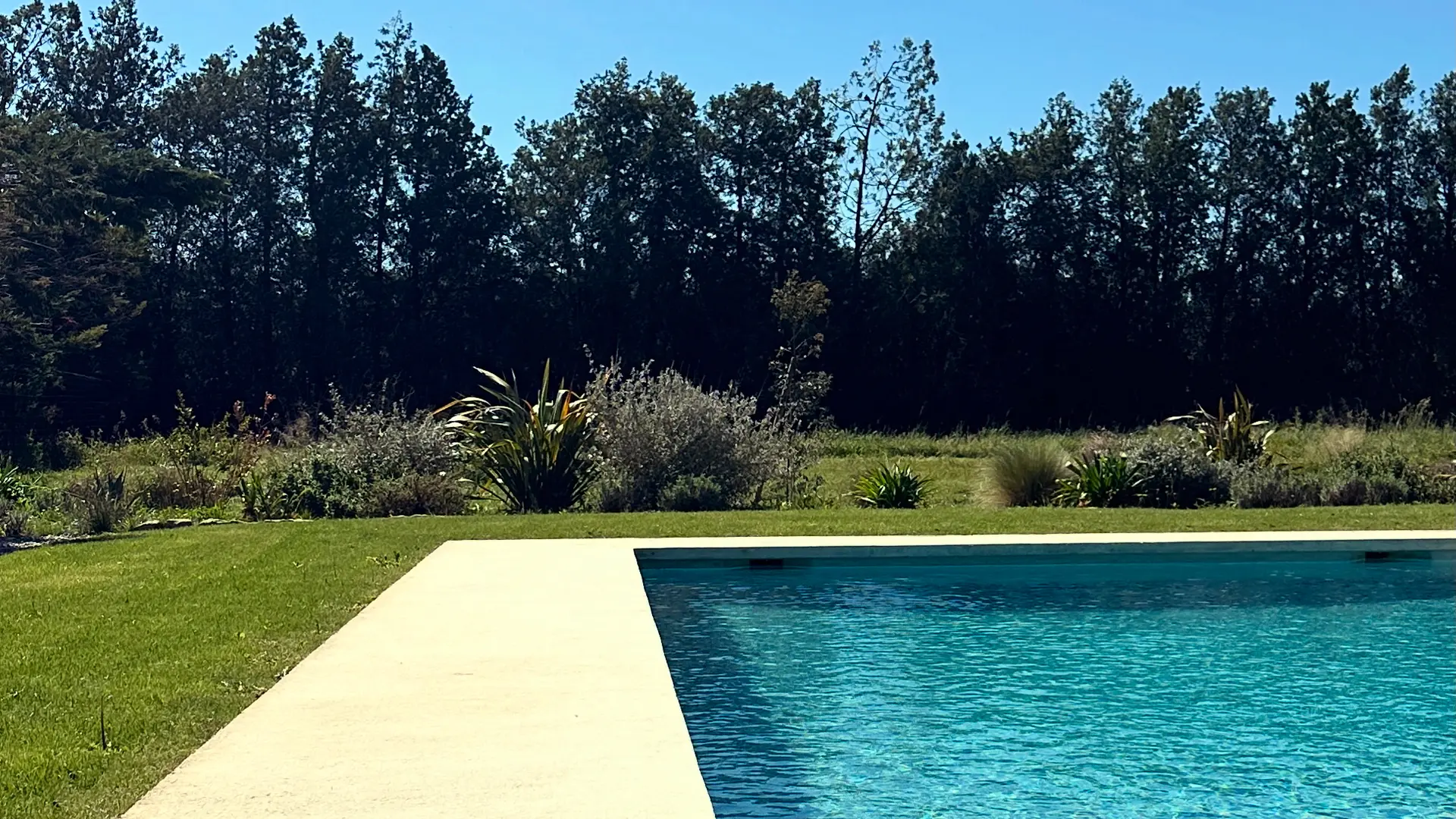 Au sein de ce parc trône votre piscine privative (10m x 5m), véritable invitation à la Dolce vita. Son bassin au chlore se compose d’une zone peu profonde d’un mètre, parfaite pour les enfants et les moments de détente aquatique, et d’un grand bain de 2,20 mètres pour les amateurs de natation. L’accès en pente douce par des marches garantit confort et praticité. À la nuit tombée, les spots intégrés métamorphosent le bassin en oasis lumineuse, créant une atmosphère féérique pour vos soirées estivales.