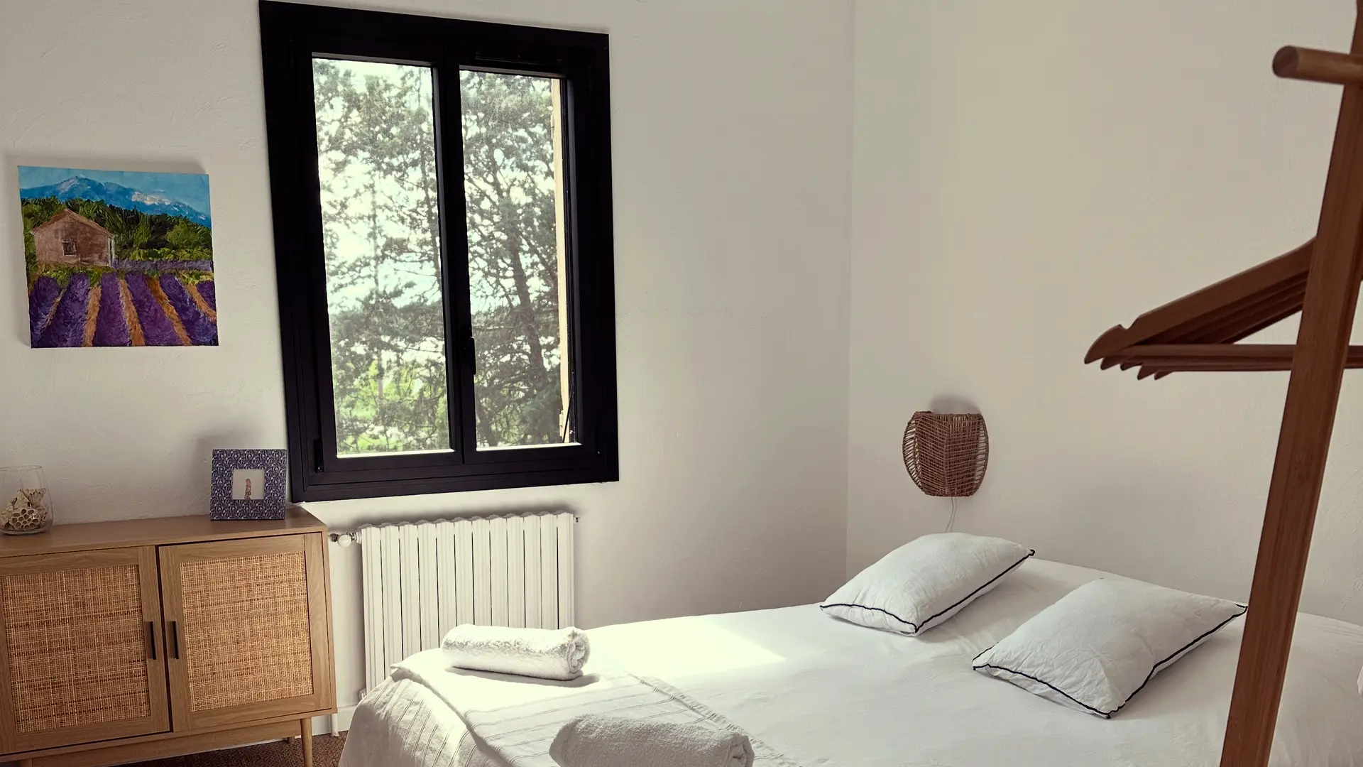 La nuit venue, laissez-vous bercer par le silence provençal dans l’une de nos quatre chambres chaleureuses. Chacune accueille une literie Premium aux matelas haute densité. Volets provençaux, moustiquaires intégrées et ventilateurs Dyson grande taille assurent une atmosphère fraîche et paisible, même lors des chaudes soirées d’été. La maison a aussi la chance d’être en partie abritée sous de grands pins.