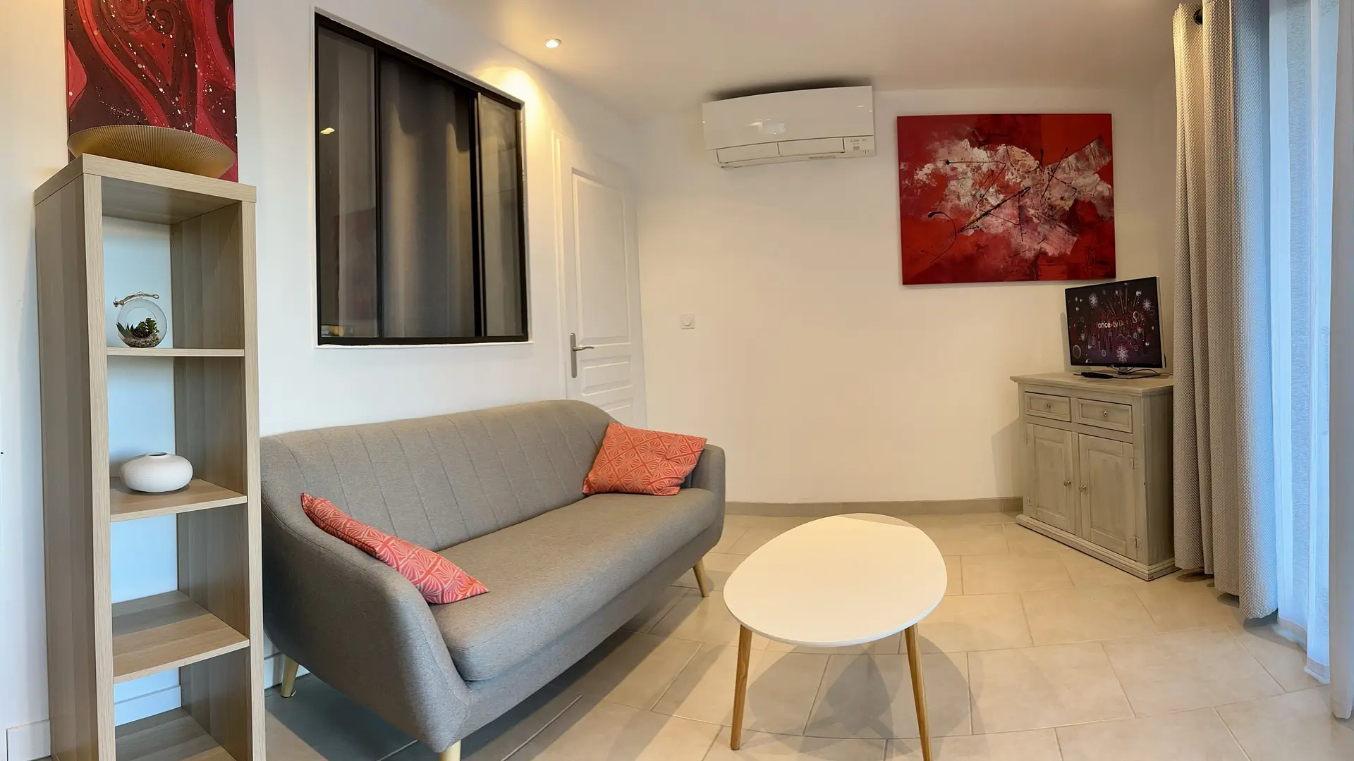 Appartement de 35m2 env dans une maison contemporaine sur un vaste terrain clos commun. Piscine, parking privé fermé, climatisation, wifi...