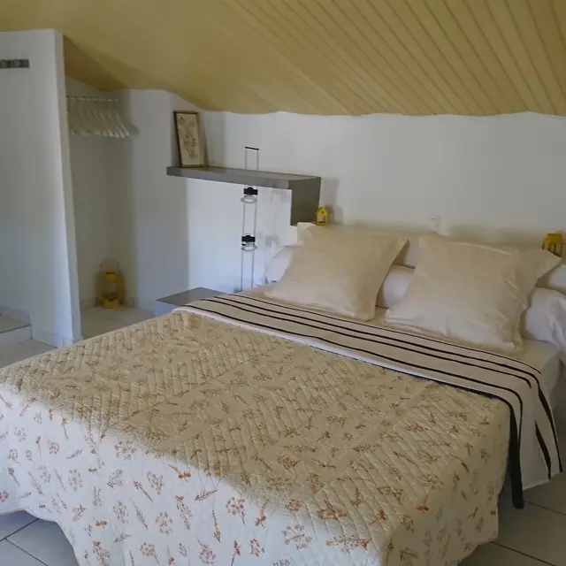 A l'étage 1 grande chambre avec un lit en 160/200 ou 2 lit en 0.80/200 avec une salle de bain avec douche et wc individuel .