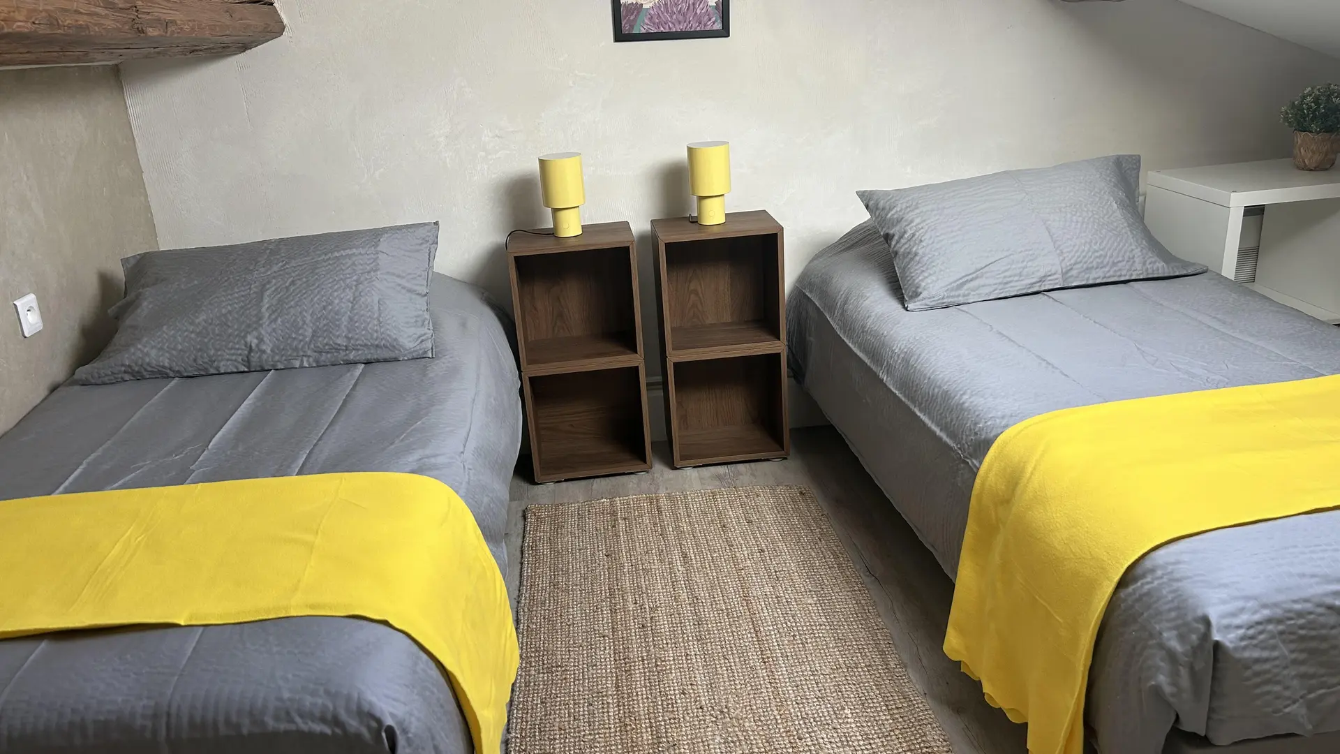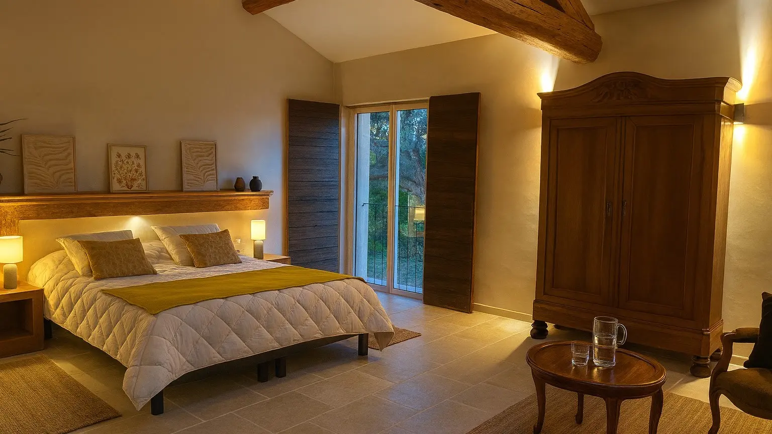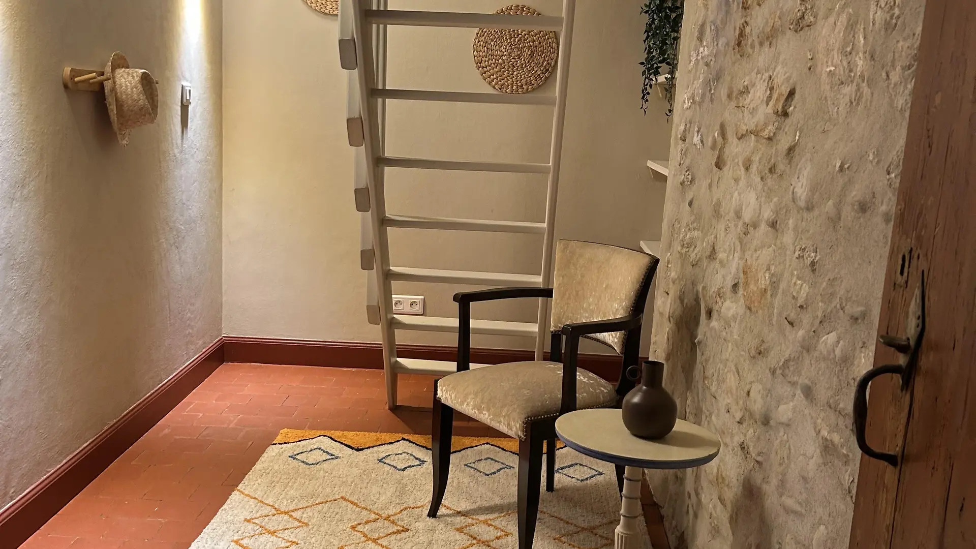 Les murs en pierre épais conservent naturellement la fraîcheur dans les pièces de vie, assurant un confort optimal tout au long de l’été. Un espace nuit pour enfant avec 2 lits simples complète l’ensemble, idéal pour un séjour en famille dans un cadre paisible et raffiné.