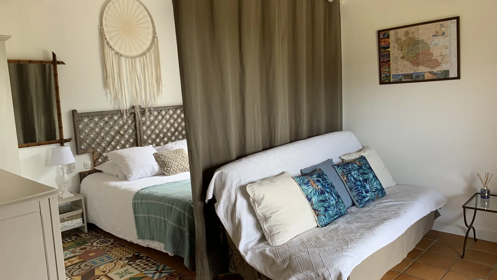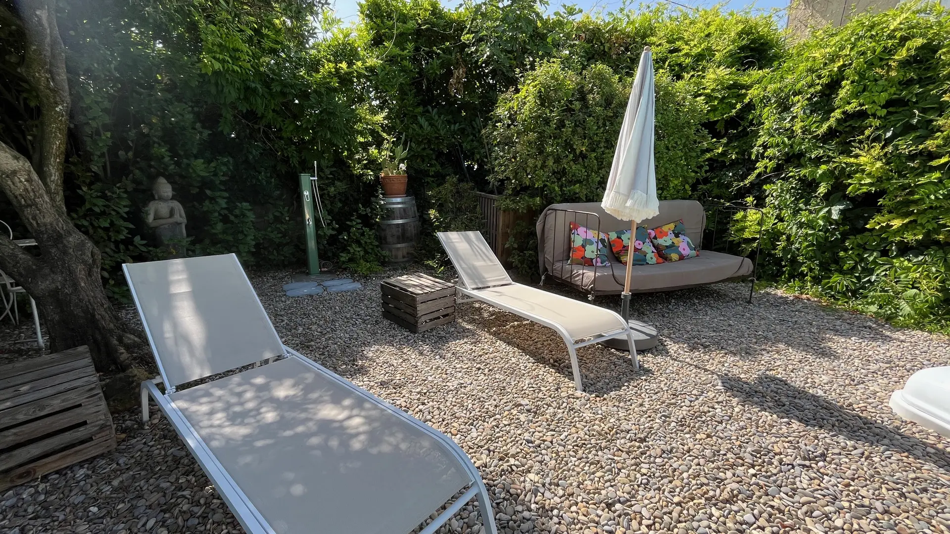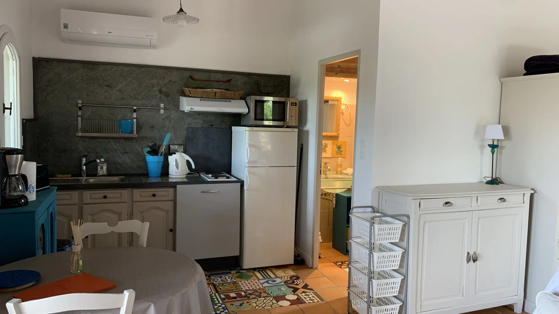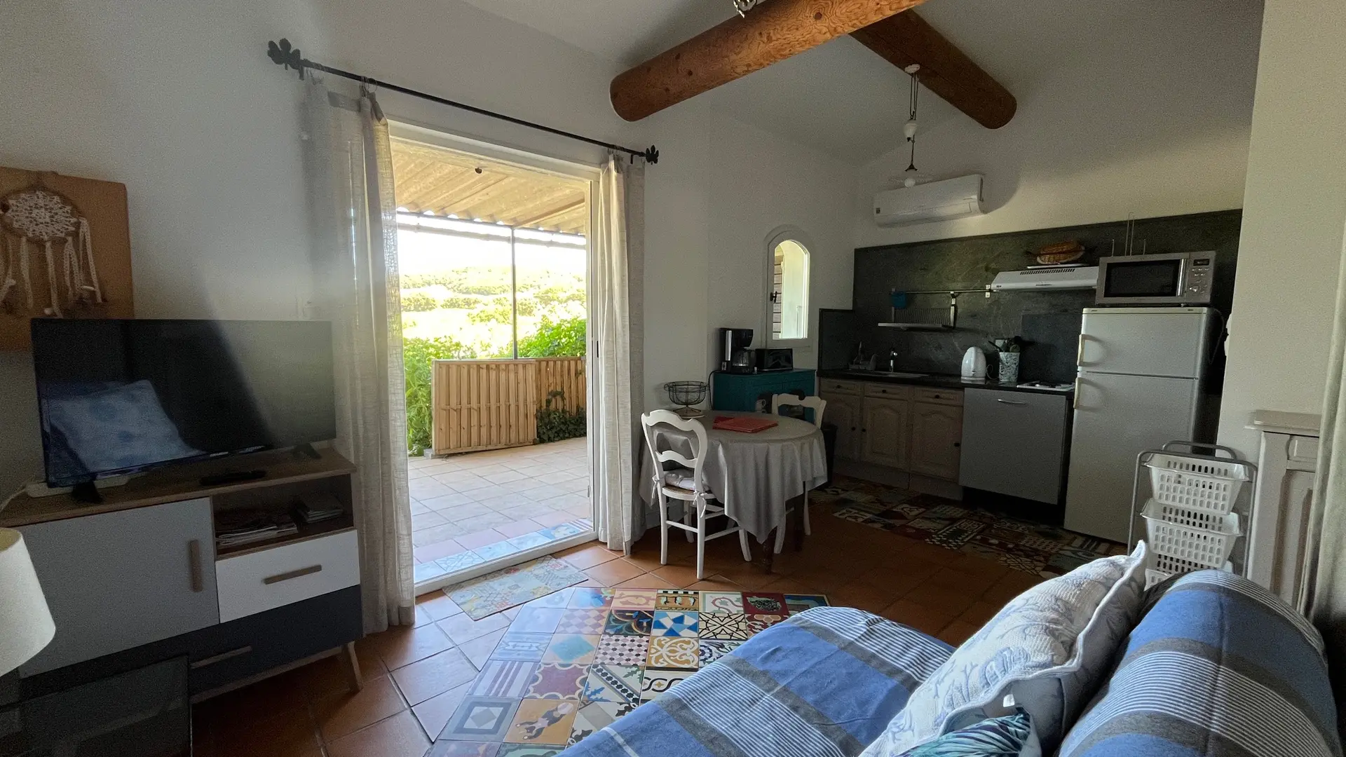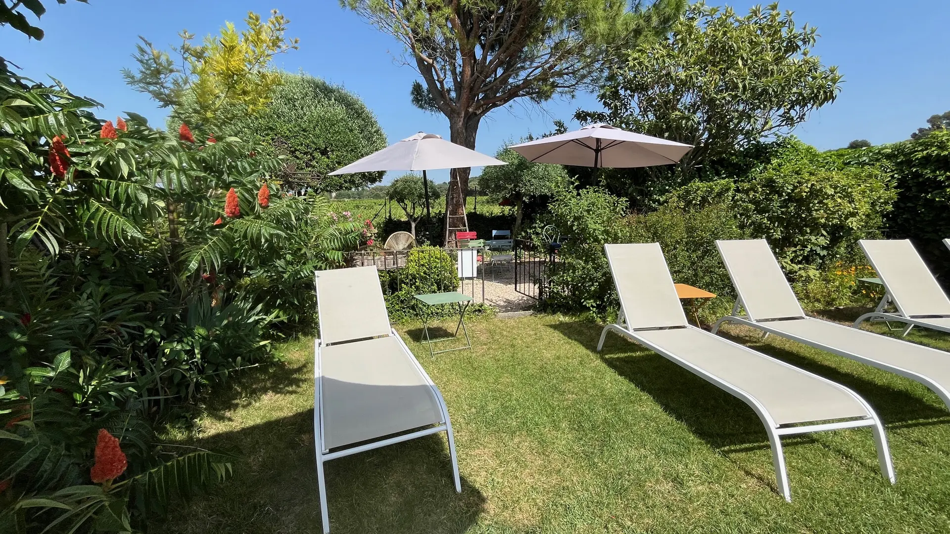 Ce studio coquet de 27m² avec sa terrasse et sa tonnelle ombragée, sans vis-à-vis, attenant au mas des propriétaires se situe au rez de jardin. Vous aurez accès à la piscine commune, dans un magnifique jardin fleuri un vrai havre de paix pour profiter pleinement du calme.