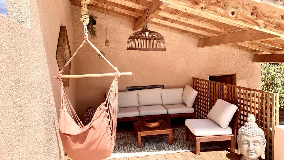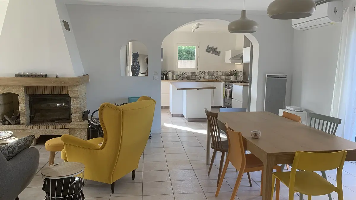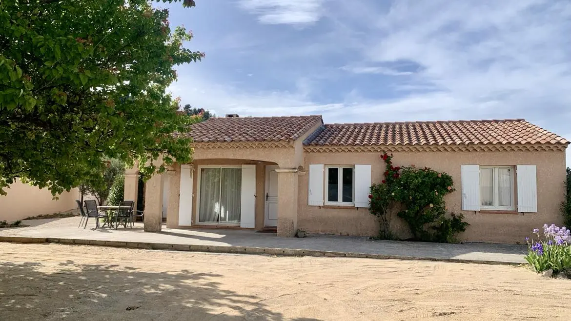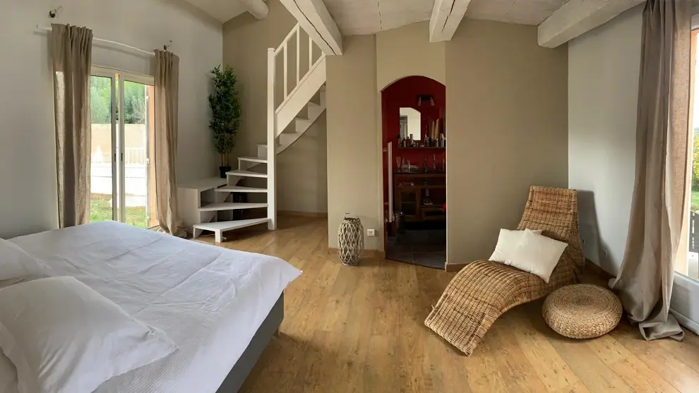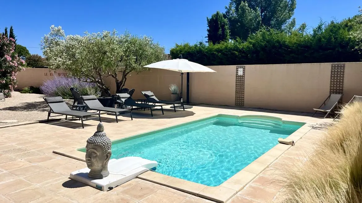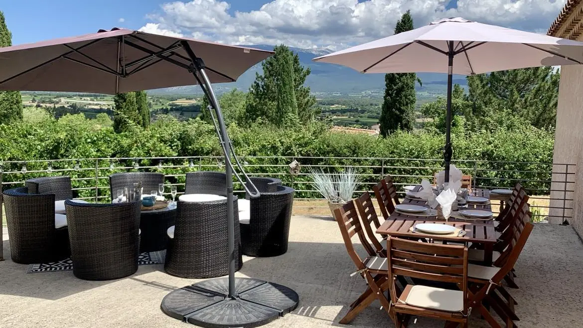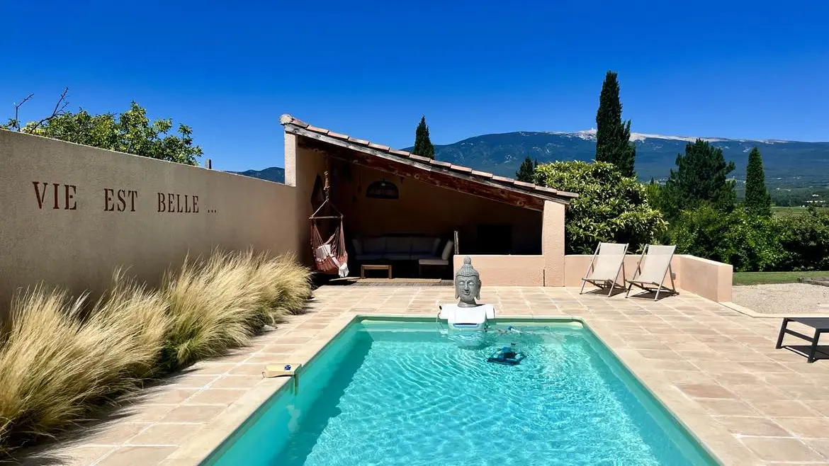 Superbe villa de 140m2 de plain-pied avec climatisation, vue sur le Ventoux et piscine. Composée de 5 chambres elle peut accueillir 10 personnes. A l'extérieur, une terrasse borde la maison, avec notamment barbecue, meubles de jardin et boulodrome.