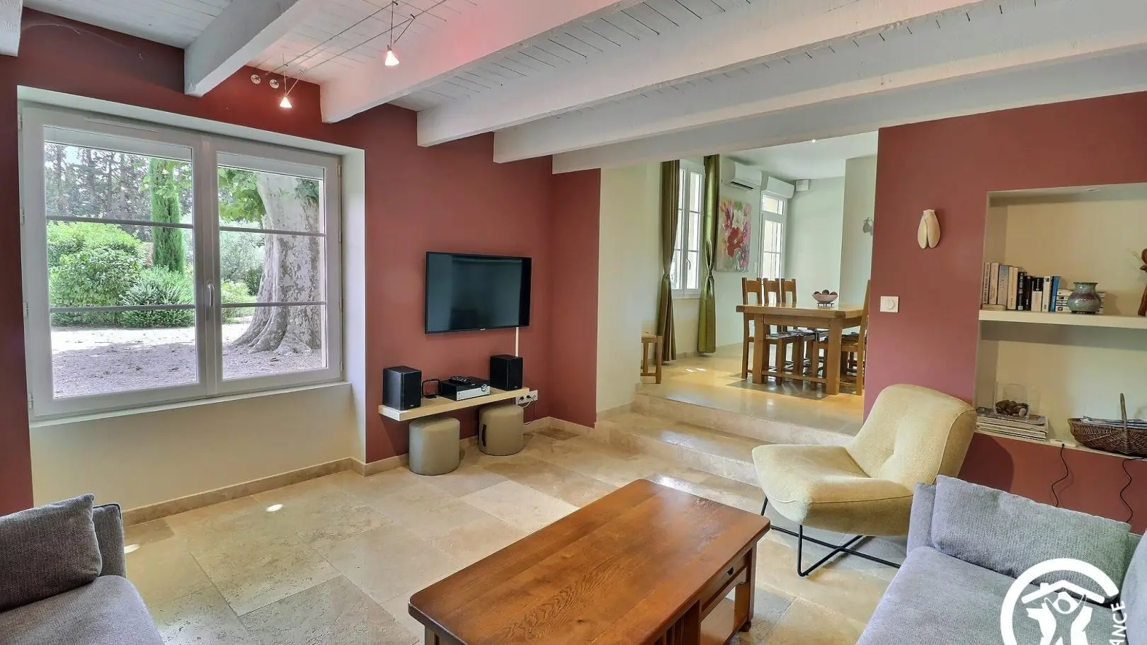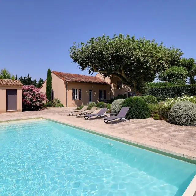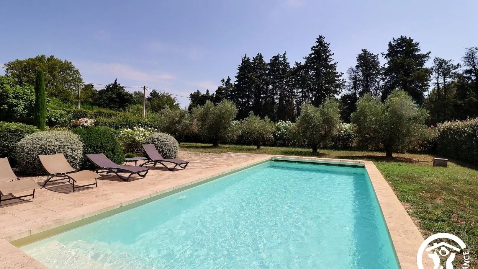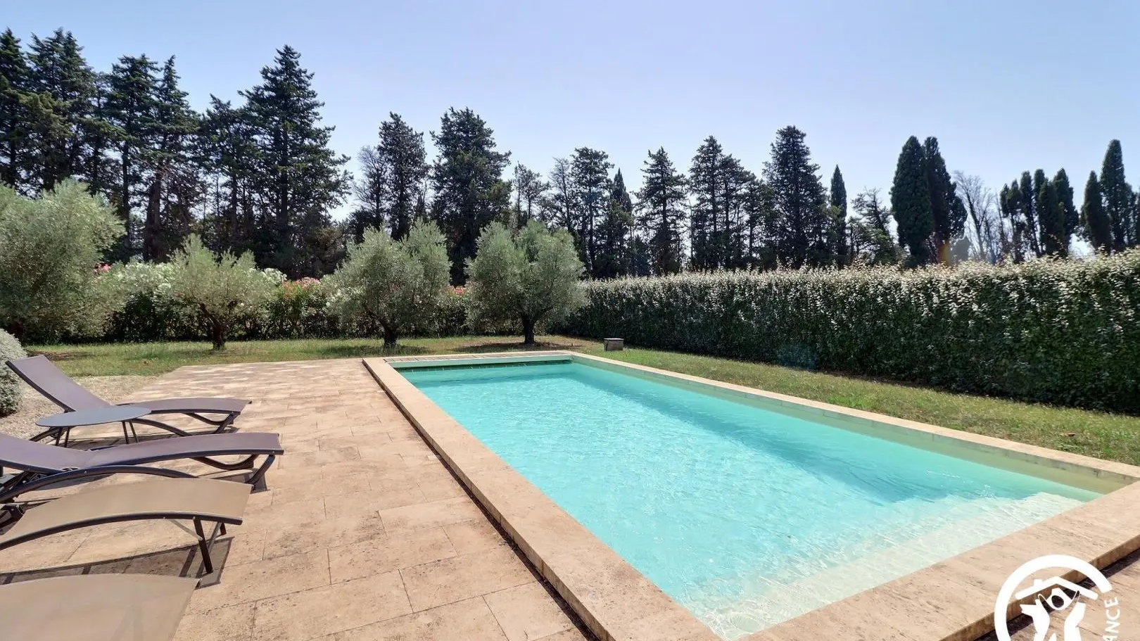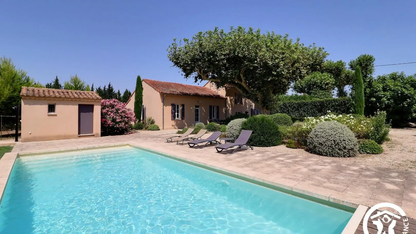 En pleine campagne entre Alpilles et Luberon, mazet indépendant sur un terrain de 1200 m² entièrement clôturé. Autour d'un jardin paysager vous disposez d'une piscine privative sécurisée (volet intégré) de 10x4m, profondeur 1.10m, ouverte de mai à septembre avec ses bains de soleil et d'une douche extérieure solaire.
