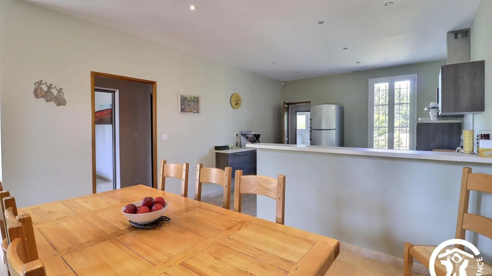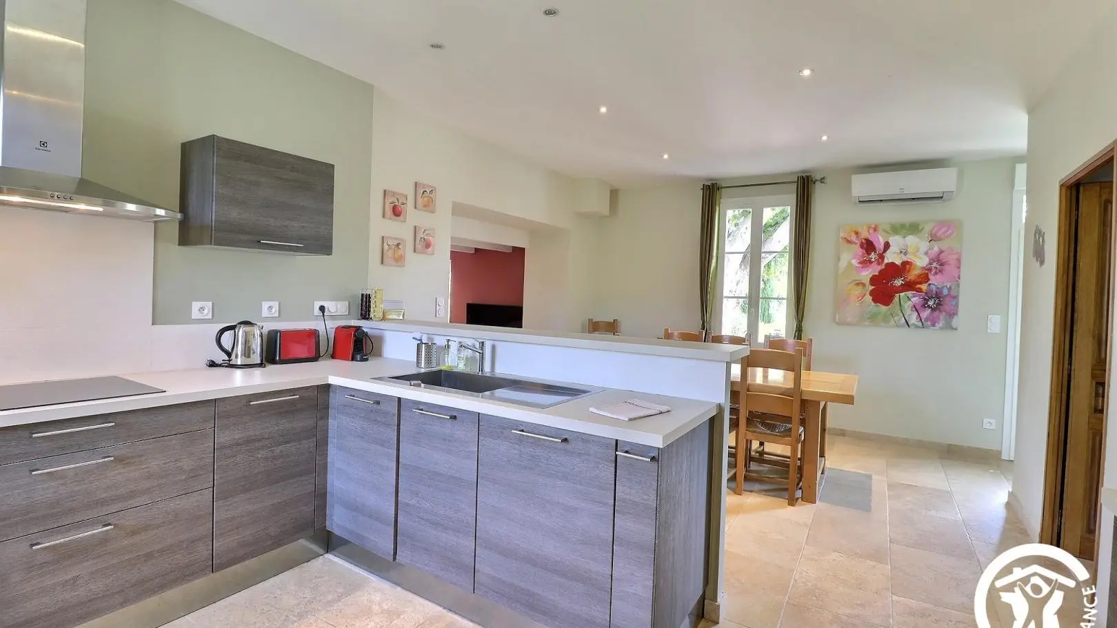 -Vaste salle à manger avec cuisine américaine (lave-vaisselle four micro-ondes plaque induction cafetière Nespresso).