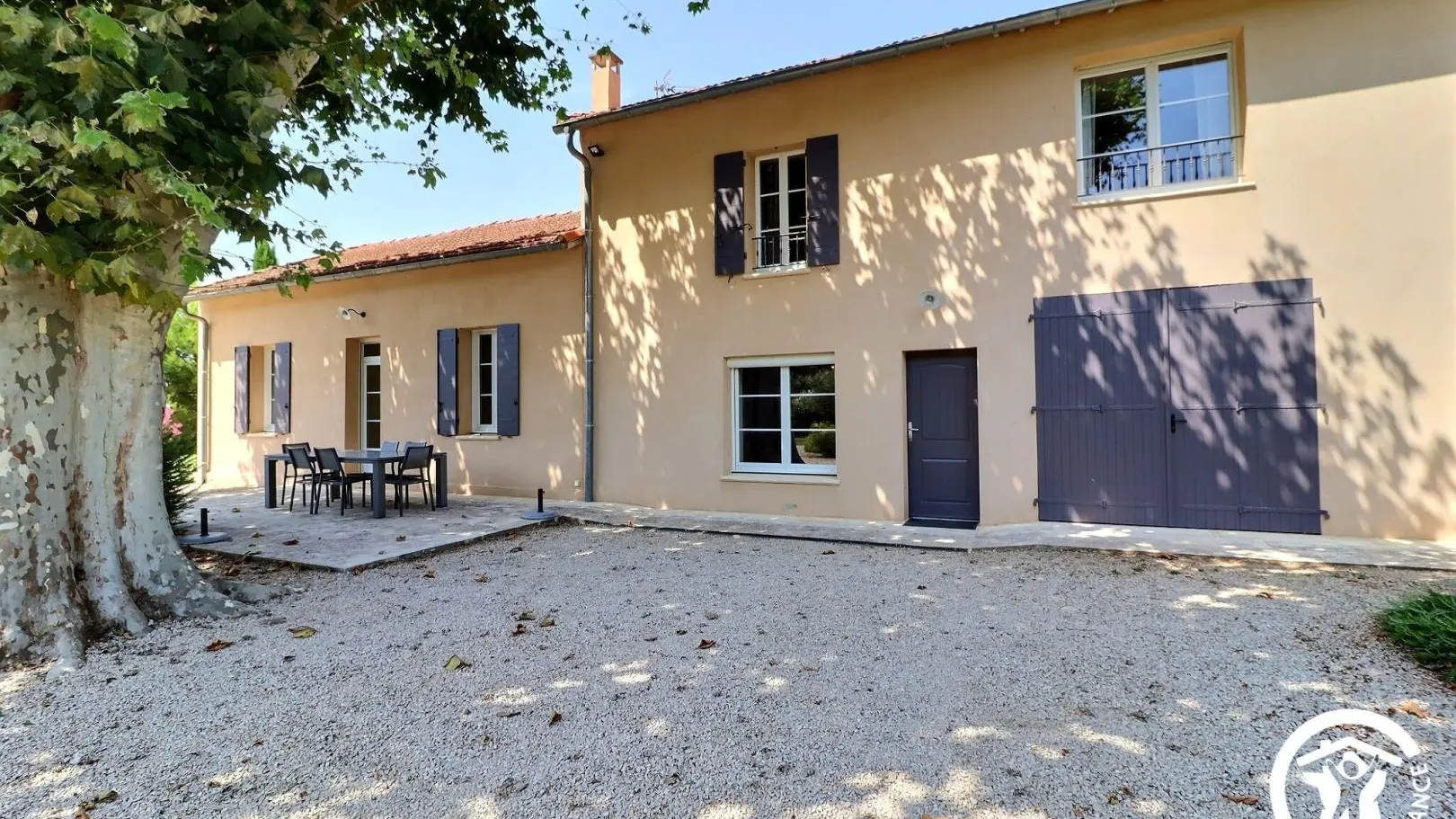 Devant la maison un platane centenaire ombrage la terrasse de 30 m2 et apporte fraicheur et quiétude au lieu. Ancien mazet entièrement rénové avec des matériaux et équipements de qualité.