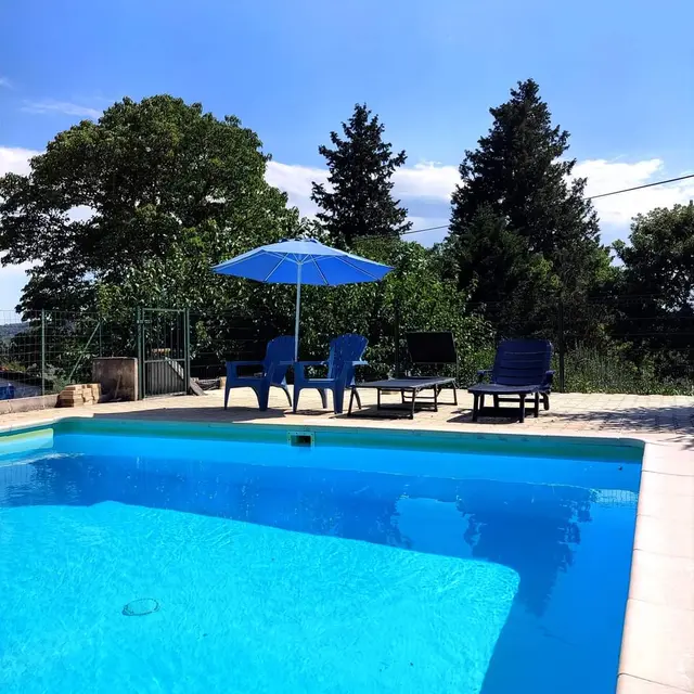 Piscine partagée avec le propriétaire en fonction des périodes avec jouissance d'un espace privatif.