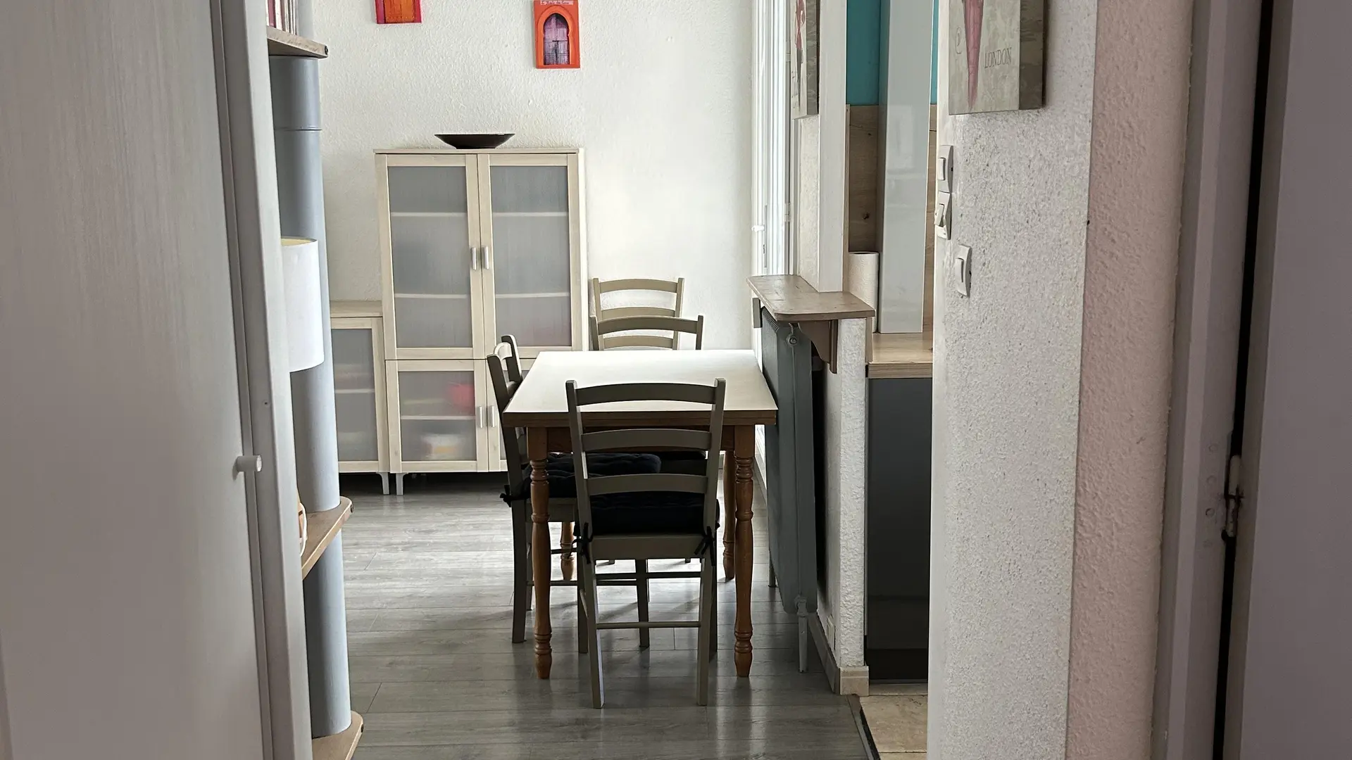 A louer pour 2026, Gréoux les bains (résidence « le Passy »), en forfait curistes (2 personnes maxi), agréable et lumineux T2 avec balcon, au 3ème étage (sur 4) avec ascenseur.
