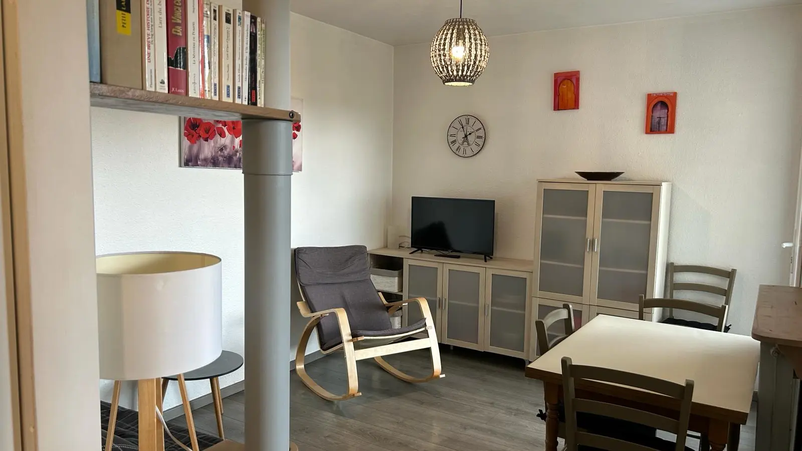 - Un salon avec un canapé convertible BZ confortable de 140, une table et 4 chaises, un rocking-chair, une télévision écran plat, meubles de rangement.