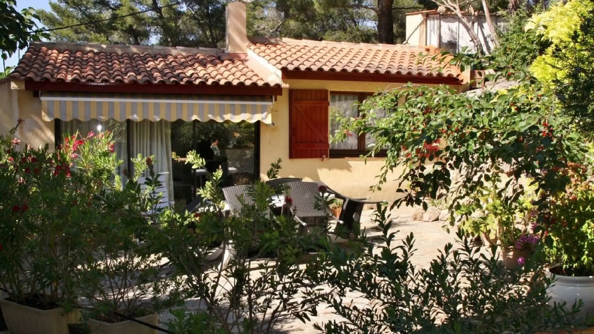 Petit pavillon indépendant dans une propriété privée de 2400m² avec piscine, en colline à 1km de la mer et des plages. Très calme, confortable, très bien équipé, propreté méticuleuse, décoration soignée, très beau jardin en terrasse.