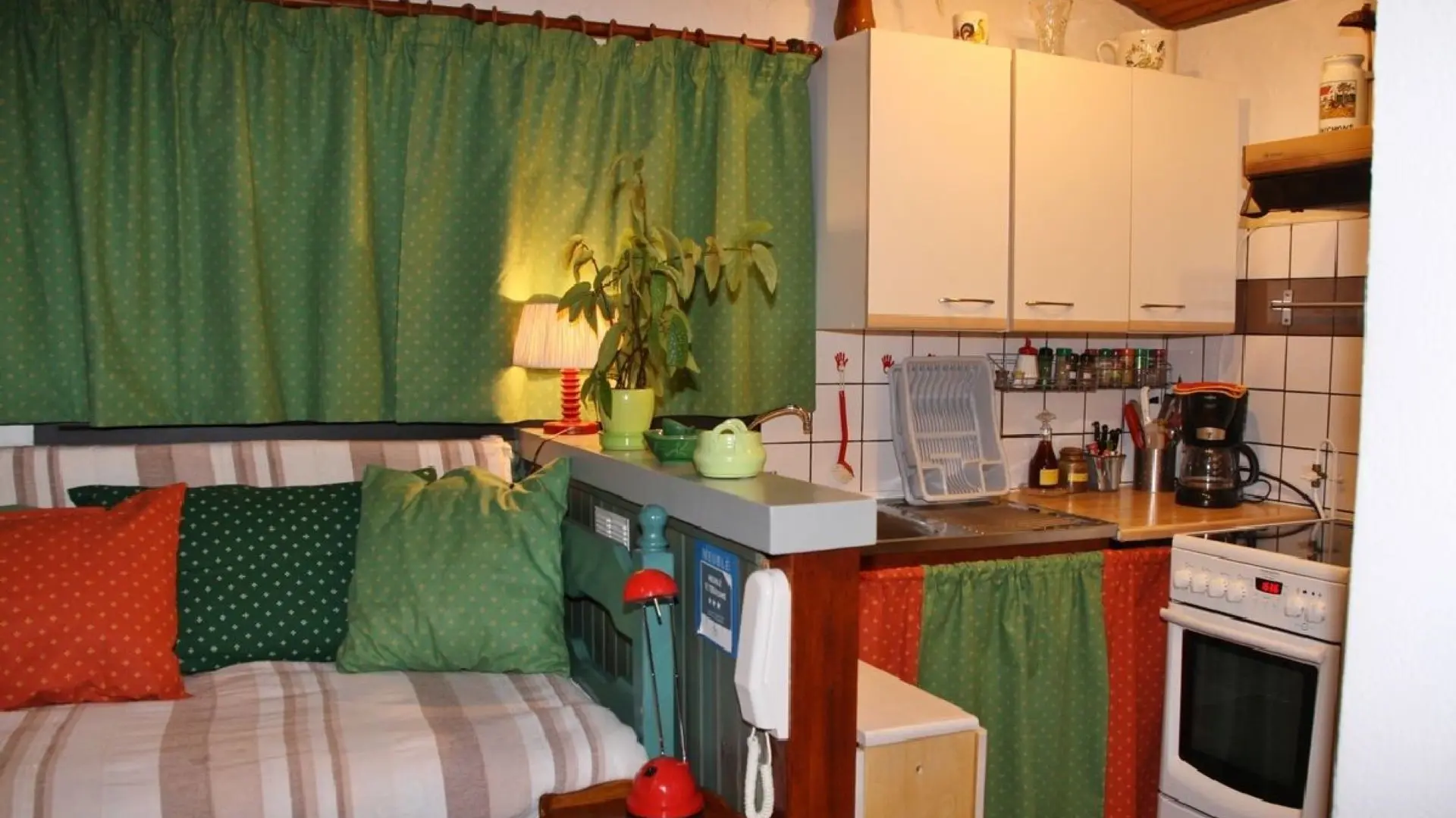 Autocuiseur, bouilloire, cuit vapeur, grille-pain,draps et linges en supplément, lit d'appoint, grand frigo, balançoire, jeux d'enfants.