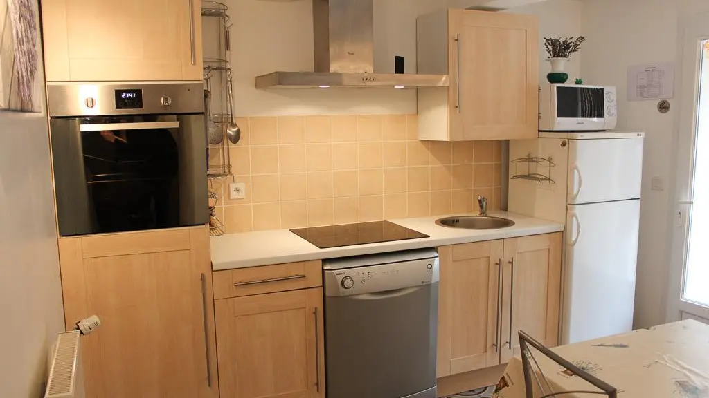 Cette maison de 55 m² sur 2 niveaux, est mitoyenne au logement des propriétaires.