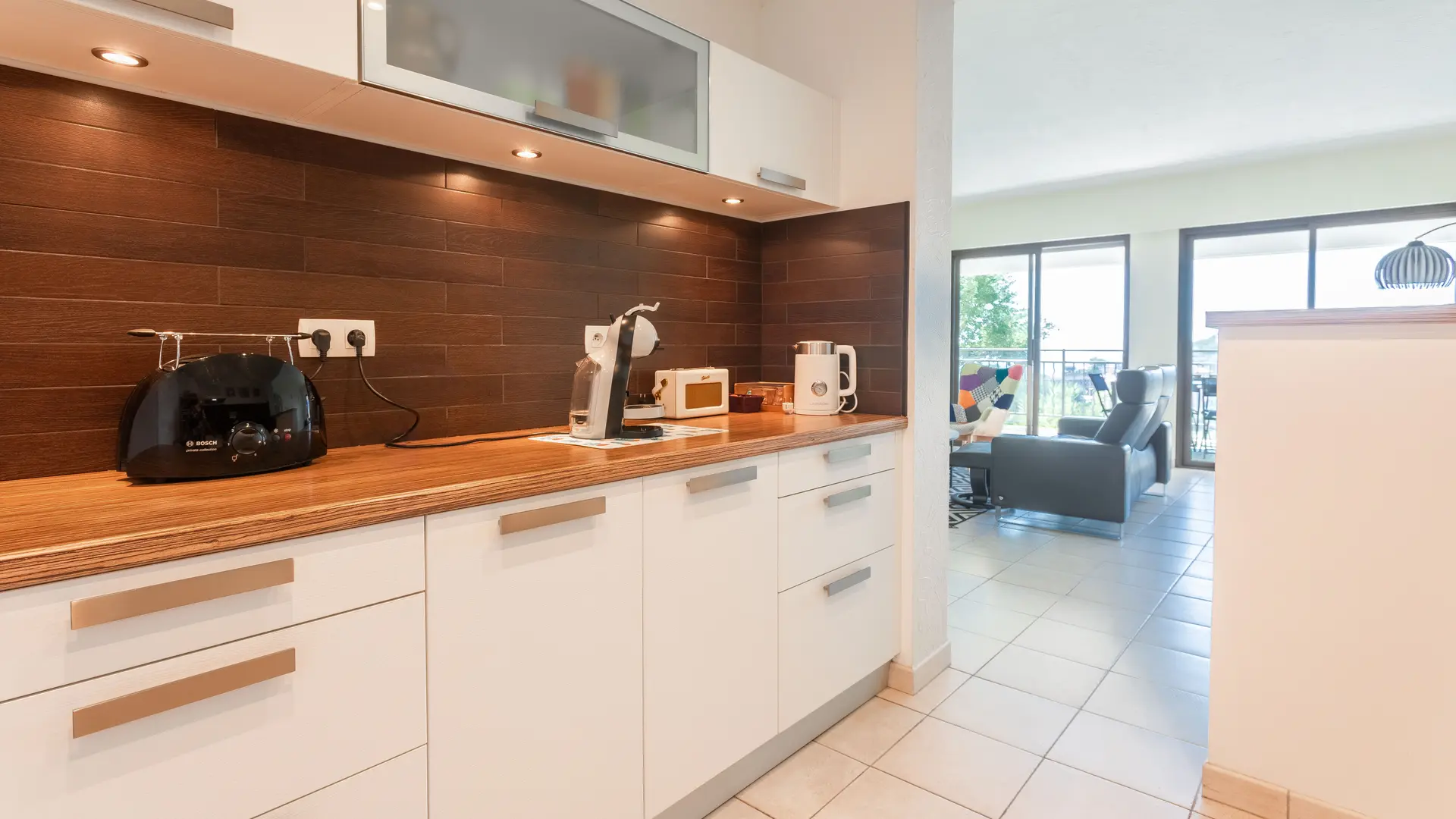 Il est entièrement équipé avec goût, moderne et très fonctionnel. Cuisine toute équipée y inclus lave-vaisselle et lave-linge. Plusieurs cafetières disponibles.