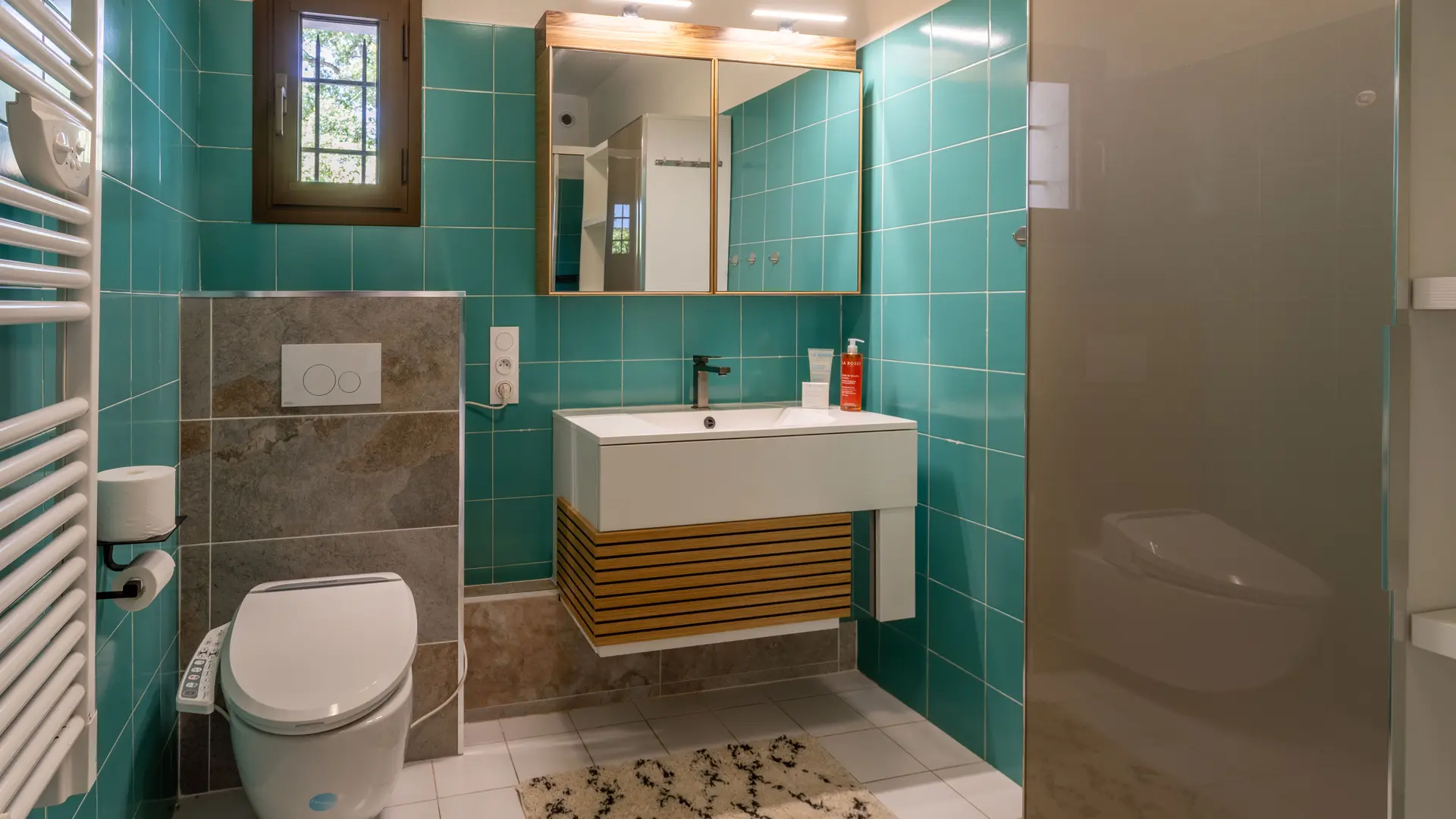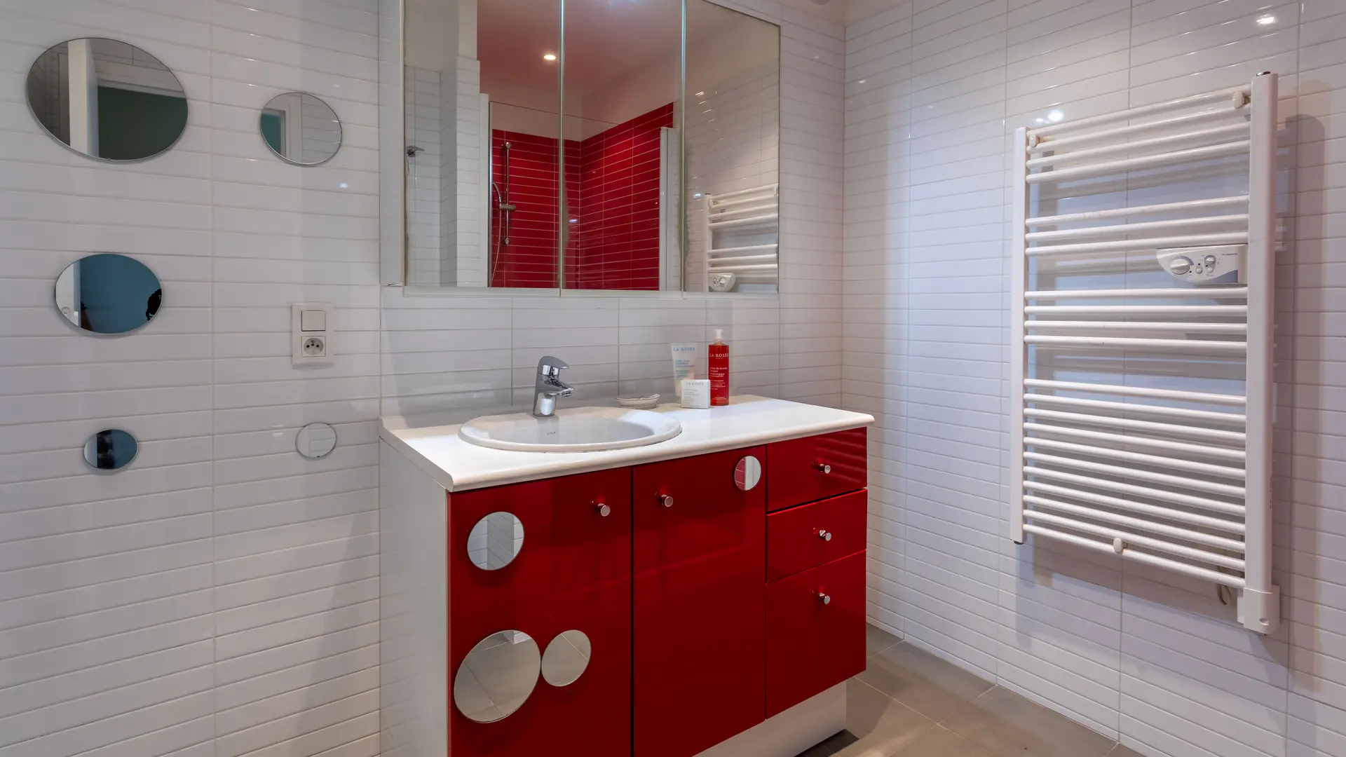 L’appartement se compose de 3 chambres, 1 chambre avec lit de 140 cm et salle d'eau, 2 chambres avec deux lits simples de 90 cm et salle d’eau indépendante supplémentaire, possibilité de rapprocher les lits pour faire un lit double. Deux WC indépendants, dont un WC japonais lavant. Une deuxième Salle d'eau est disponible, entièrement indépendante.
