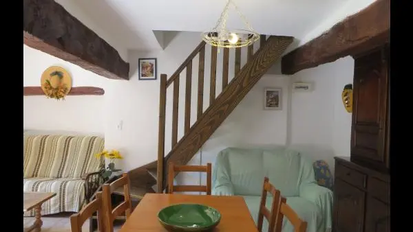 Ce logement se compose : en rez-de-chaussée d'un séjour-coin salon-espace cuisine, salle d'eau avec W-c. Accès à l'étage, par des escaliers en bois, deux chambres en sous pente, avec pour l’une 1 lit double, et pour l’autre 2 lits simples.