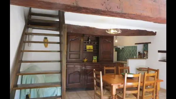 En campagne au pied du Ventoux dans un petit hameau, dans une ancienne maison de village, logement avec jardinet privé et ombragé, orienté sud-est. Dans même maison se trouvent 3 autres locations. La piscine commune (15x5 M) clôturée, est accessible de fin mai /début juin au 30/09, et, est située sur un terrain à proximité des gîtes, avec une très belle vue panoramique sur la campagne aux alentours. Bel espace arboré commun aux gîtes, avec espace barbecue.
