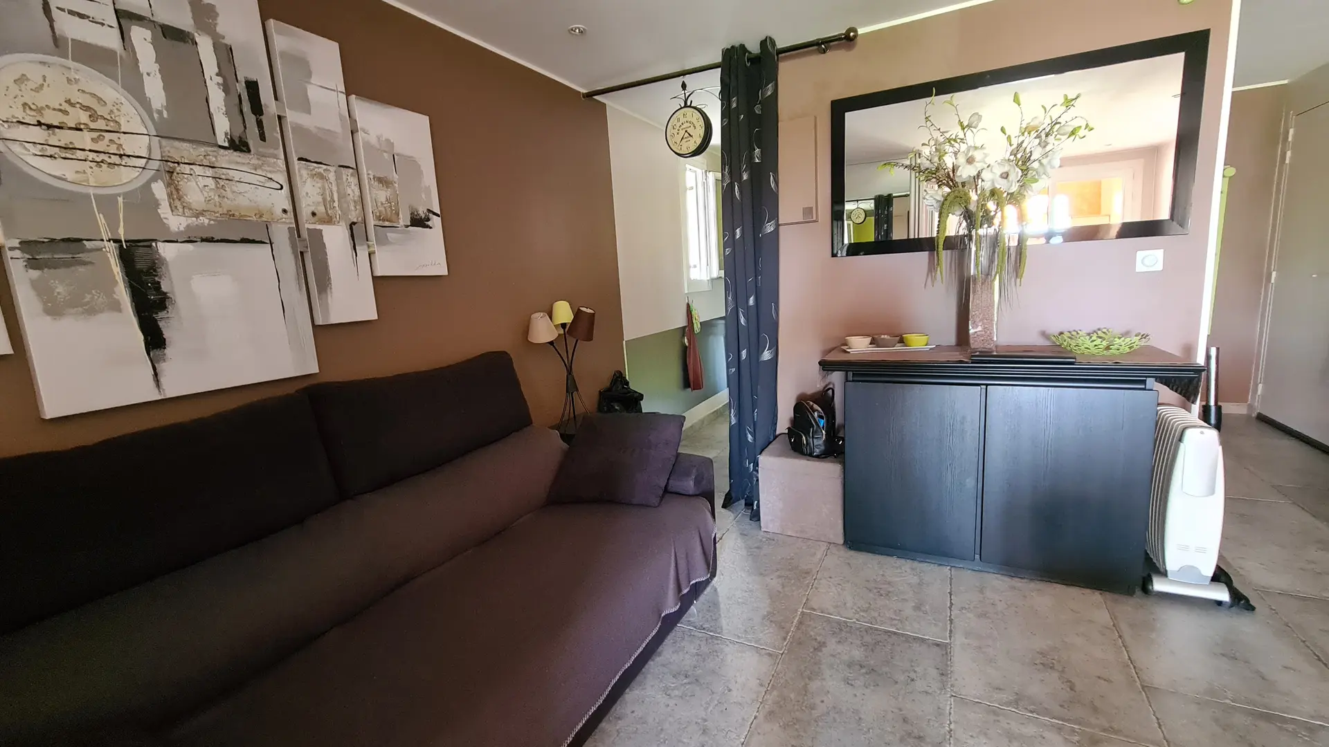 Idéalement situé (proche supérette, marché, restaurants (traditionnel, burgers, pizzeria), boulangerie, boucherie, journaux, coiffeur, et bord de mer), ce rez-de-jardin entièrement rénové, vous accueillera pour des vacances à la mer de tout confort, en respect des mesures sanitaires. La cuisine est équipée de plaque induction 4 feux, four multifonctions/micro-ondes, lave-vaisselle, lave-linge, frigo-congélateur, Nespresso, grille-pain ; 1 salle d'eau; 1 WC séparé; 1 cabine avec lit de 140 + TV; salon avec canapé Rapido (vrai matelas), TV écran plat, connexion internet WIFI; ventilateur; 1 grand placard avec porte coulissante miroir; loggia + terrasse + salon de jardin + 3 bains de soleil, store électrique, parasol; fer à repasser + table; parking privé; 2 piscines dans la résidence (ouvertes de mi-juin à fin septembre environ); proche commerces (5 min à pied) ; proche tennis et école du cirque payants.